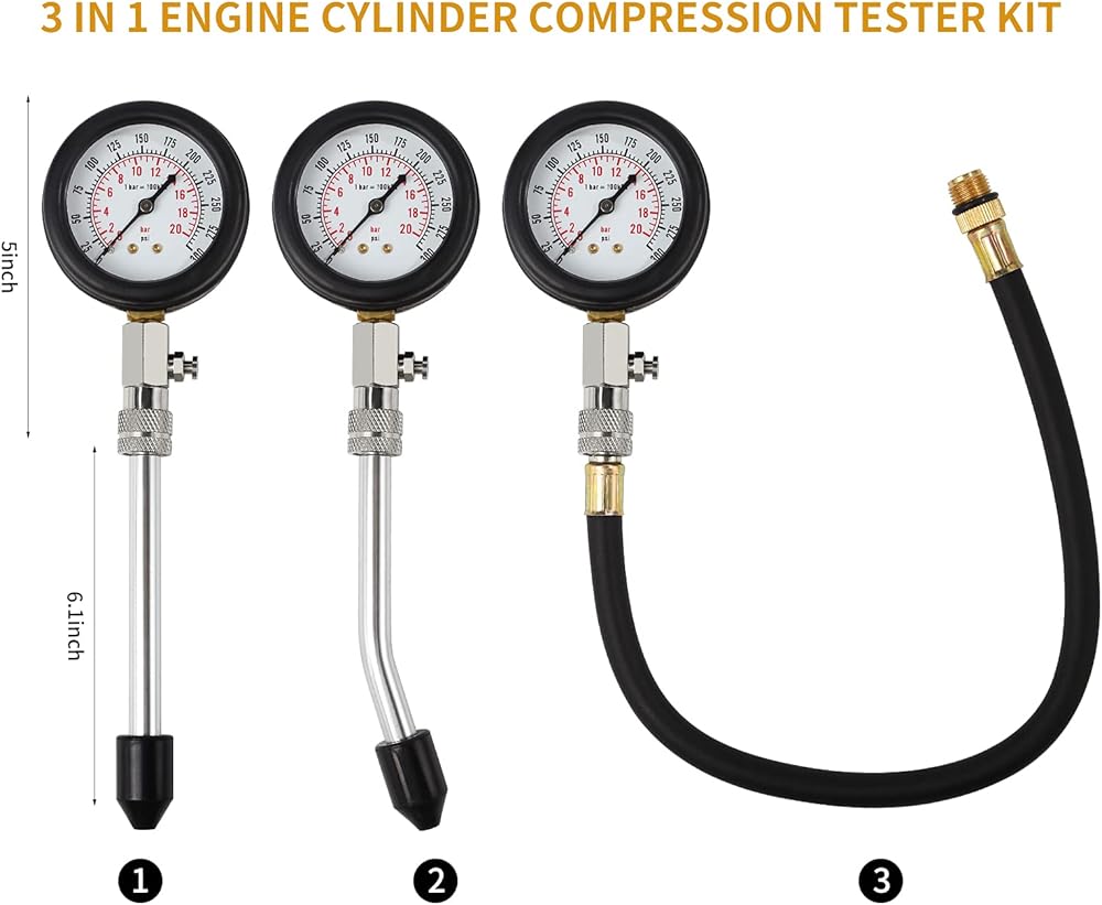 • Professional Tester Kit: Our cylinder compression tester kit is a professional tool to measure pressure on gasoline engine cylinder quickly and accurately. It is suitable for petrol engines on motorcycles, cars, trucks, ATVs, and any other vehicles.
