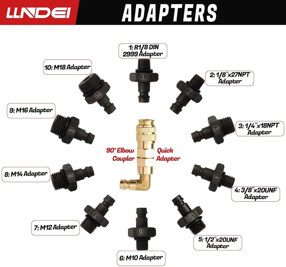 ✔【مصممة لتدوم طويلاً】: المحولات الخاصة بنا مصنوعة من الفولاذ والوصلات السريعة مصنوعة من النحاس. إنها تمتلك صلابة عالية، ومقاومة للصدأ، ومتينة، وتوفر ختمًا ممتازًا للهواء. خرطوم طويل بطول 4 أقدام مصنوع من راتنجات النايلون المطاطية ويمكنه تحمل أقصى ضغط عمل يصل إلى 300 رطل لكل بوصة مربعة. بالإضافة إلى ذلك، تشتمل المجموعة على حقيبة صغيرة من الحلقات الدائرية لاستبدال تلك الموجودة على المحولات.