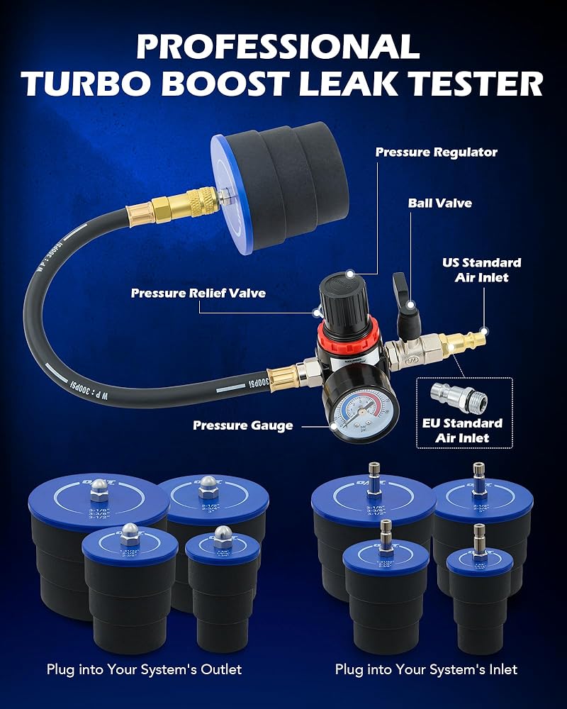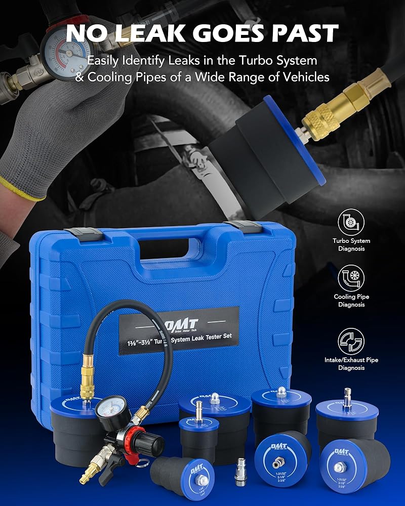 مجموعة شاملة: مجهزة بـ 4 محولات اختبار، 4 محولات للتقطيع، ومجموعة قياس الضغط 0-86 رطل لكل بوصة مربعة، ومحول DIN، وزوج من القفازات، توفر مجموعة اختبار تسرب الضغط بنظام توربو جميع الأساسيات لاختبار شامل وخالي من المتاعب .