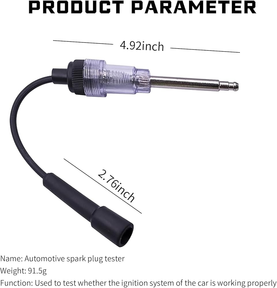 • Product Parameters: After purchase, you will receive 1 x car inline spark plug tester, which is enough to meet the needs of vehicle testing. Color: black. Line length: 3.9 inches/100mm. Pen length: 4.9 inches/125mm. Probe length: 2.2 inches/58mm.