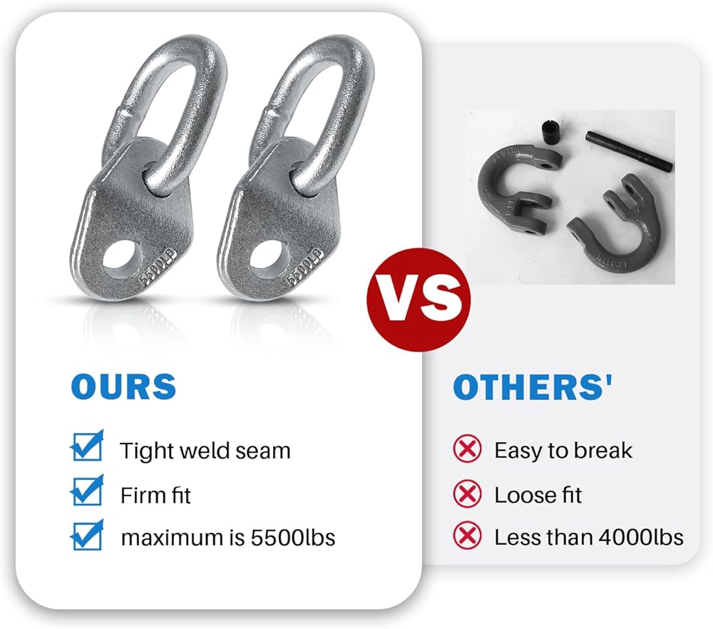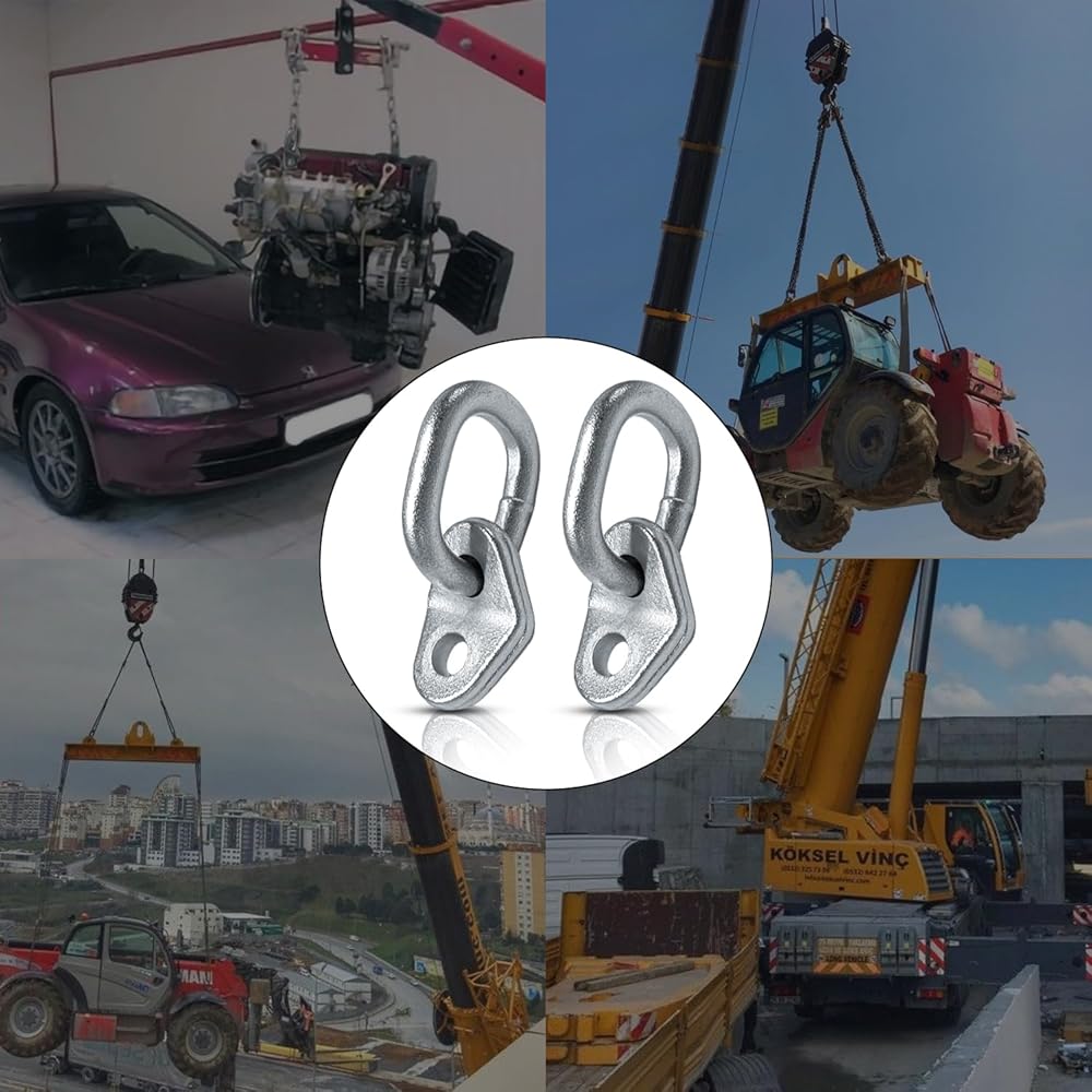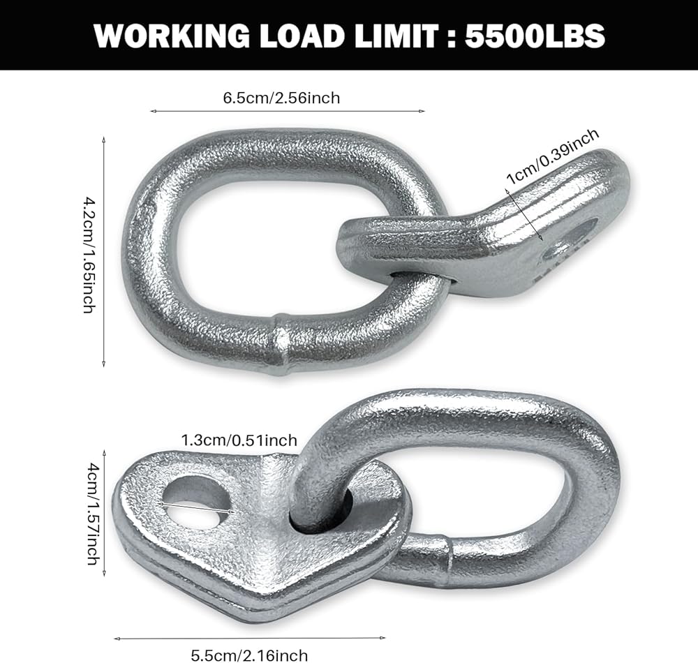 【قوة وزن قوية】يمكن لكل مجموعة من حلقات الرفع أن تدعم ما يصل إلى 5500 رطل، والحد الأقصى لقطر المسمار المقبول لدعامة الرفع هو 1/2 بوصة.
