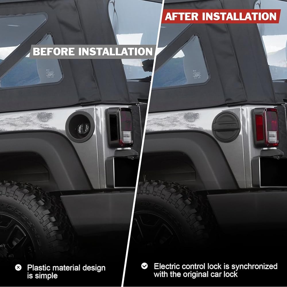 مادة ترقية: غطاء خزان الوقود الكهربائي مناسب لسيارة Jeep Wrangler JL 2018-2024، الاستثناءات: ديزل JL، موديلات بابين بدون قفل مركزي. يرجى التحقق من الوصف للتأكد من التوافق قبل الشراء.