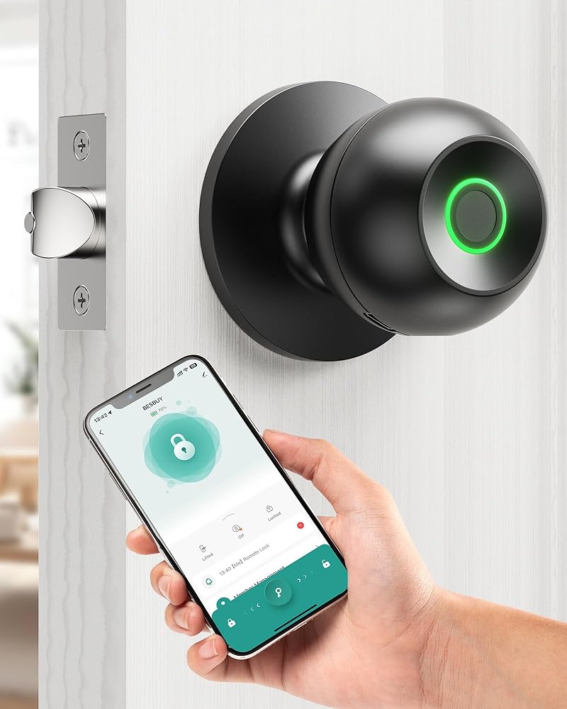 قفل باب الدخول الذكي بدون مفتاح من besBuy، قفل باب بصمة الإصبع مع التحكم في التطبيق، قفل ذكي لباب غرفة النوم، منفذ شحن من النوع C في حالات الطوارئ، قفل بيومتري رائع للغرفة والمكتب والشقة