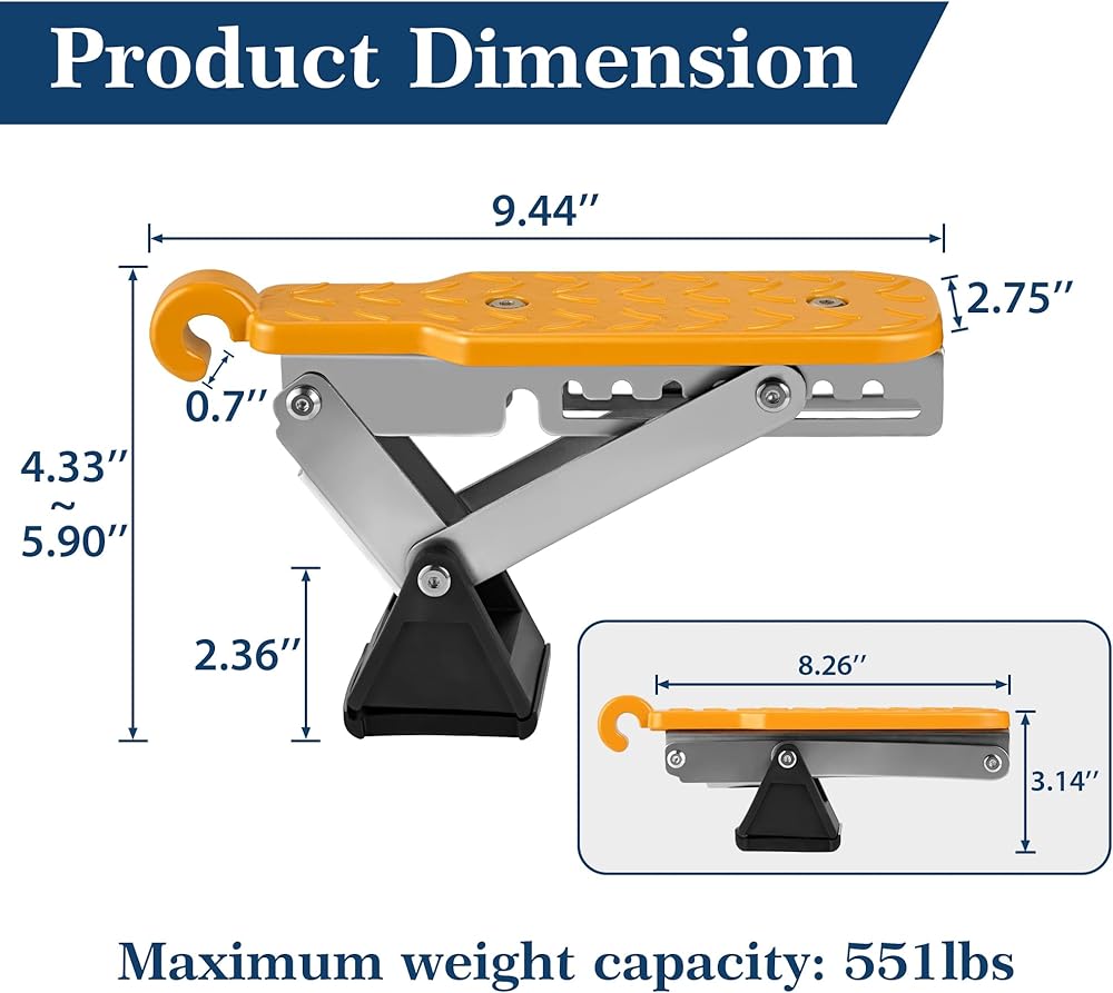 Save Space: When you need to store it, just fold the hook down, the car door step can folds up to a small size. You can store it in your toolbox or spare tire compartment