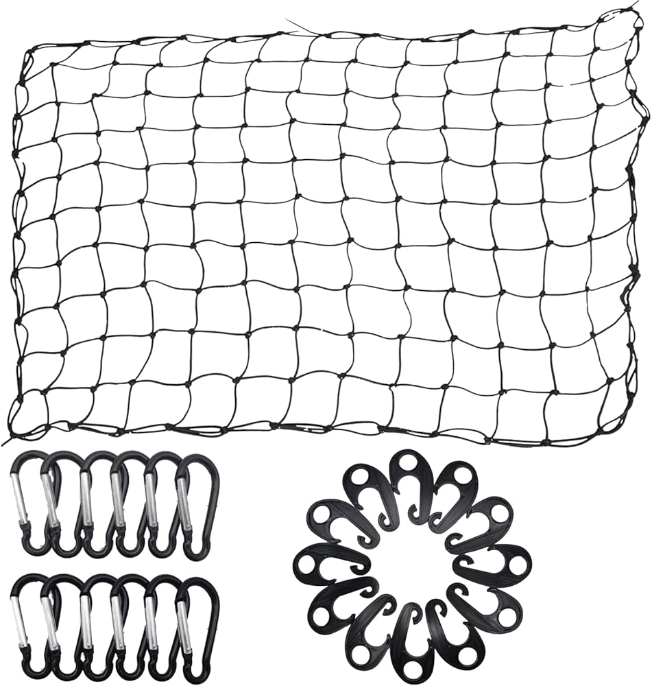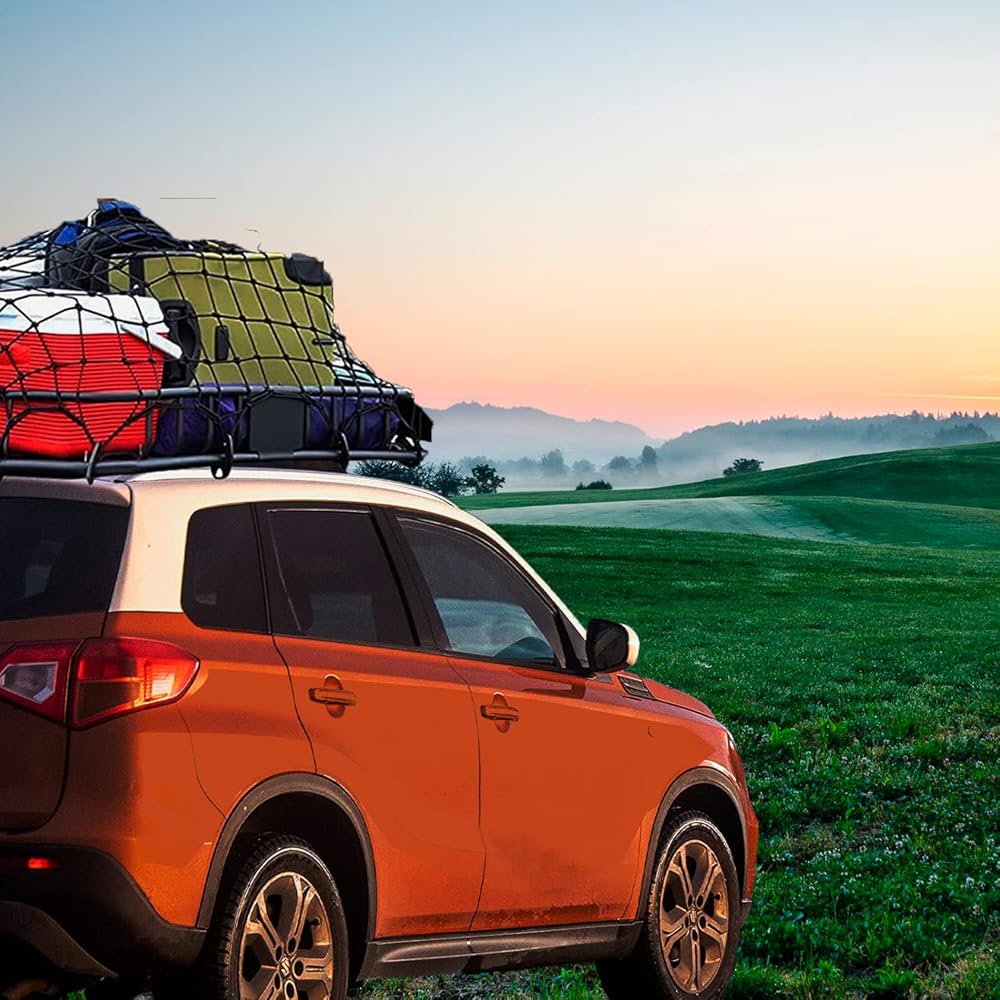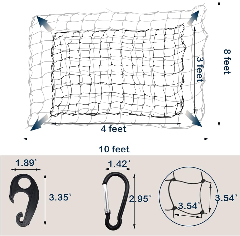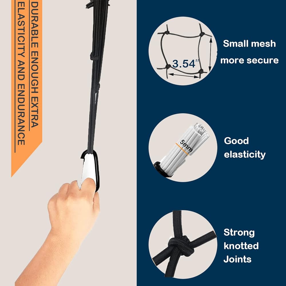 [Suitable for small and large cargo] - Thisroof rack cargo net features a tight 3.52 "x 3.52" grid design.Elastic cargo net can prevent small objects from falling and cover larger cargo(such as luggage, tarpaulin, freezer and ect) to provide greater strength andprotection.