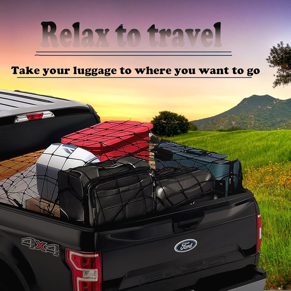 [Extensive compatibility] - This full-size bungee jumping cargo net extends from the usual 3'x4 'area to more than 6'x8' for pickup, jeep, ATV/UTV, boat ,GMC, TRUCK, SUV , etc.