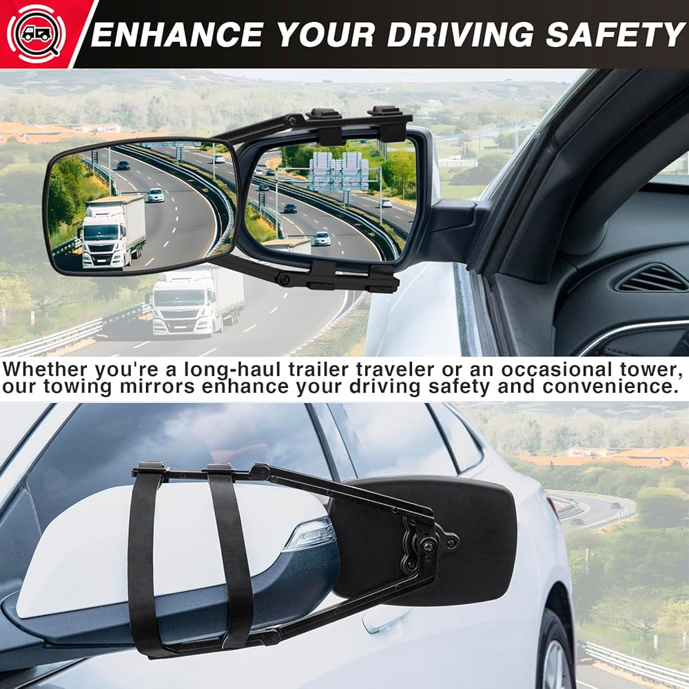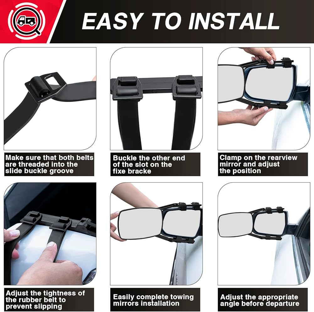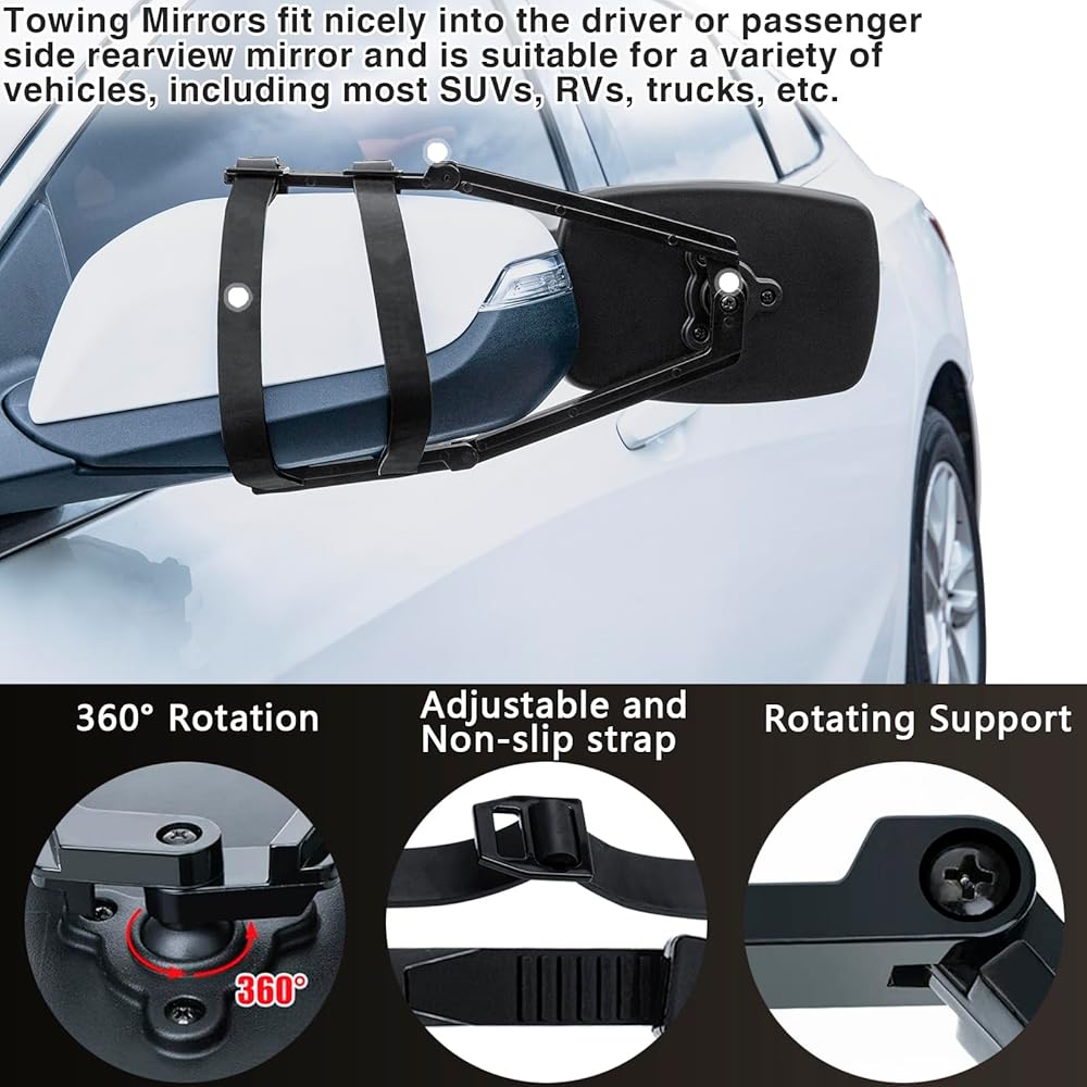🚙【تصميم قابل للتعديل وغير قابل للانزلاق】تتميز مرآة السحب المشبك بتصميم قابل للتعديل مع حزام مطاطي لسهولة التخصيص. يتميز الحزام المطاطي لامتدادات مرآة السحب بوظيفة عدم الانزلاق لضمان تثبيت مستقر، كما أنه يتمتع بمقاومة ممتازة للرياح للحفاظ على الثبات عند القيادة بسرعات عالية.