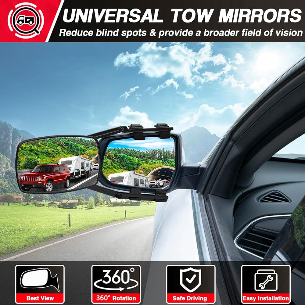 🛠【تركيب متين وسهل】وصلات مرآة الشاحنة مصنوعة بشكل أساسي من زجاج عالي الجودة وABS، وهو قوي ولا يتشوه بسهولة ومتين. ⚙مرايا السحب القابلة للتمديد سهلة التركيب دون أي أدوات أو تعديلات، ولا داعي للقلق بشأن أي ضرر يلحق بسيارتك.