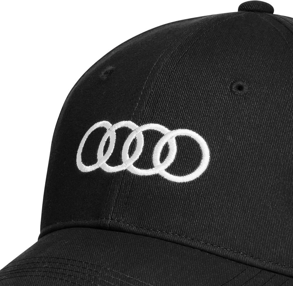 A simple and sporty accessory for men and women: the popular Audi baseball cap. Details: Audi cap in baseball cap style for men and women, with 6 panels and reinforced front panel, made from slightly roughened cotton twill with embroidered centre. 7 cm large Audi rings logo in contrasting colour on the front panel – discreet metal clasp with subtle Audi rings logo on the back – cleaning strap inside tone in tone with Audi rings embroidered material: 100% cotton, woven, care instructions: wipe clean with a damp cloth.