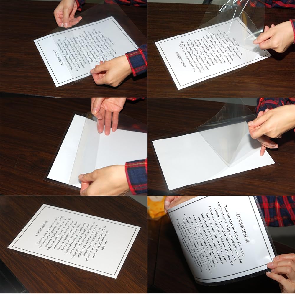 إغلاق ذاتي مع ظهر سهل التقشير؛ لا حاجة إلى آلة أو معدات؛ 100 ورقة من أوراق التغليف ذاتية اللصق أحادية الجانب؛ سمك 4 مل - أوراق تغليف عالية الجودة مع نتائج احترافية