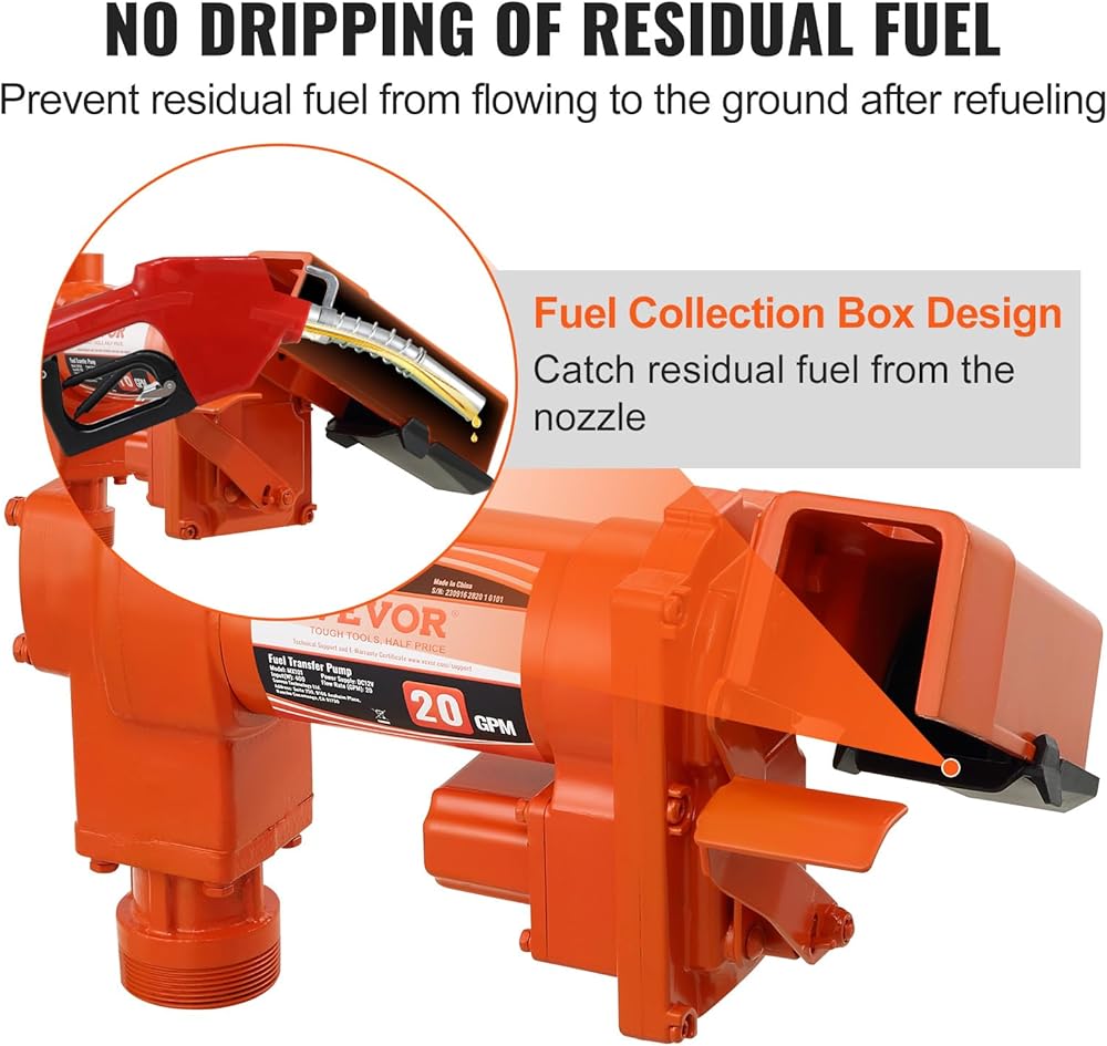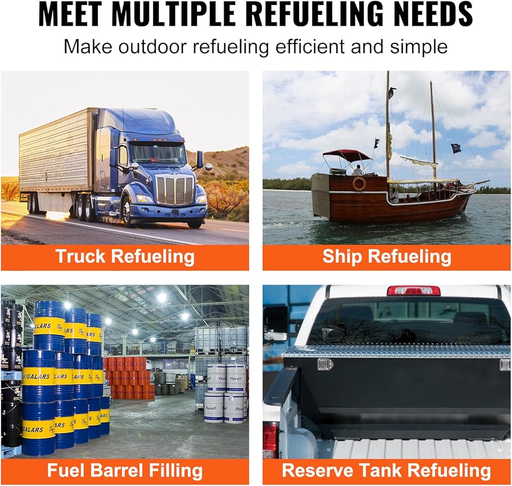 فوهة سحرية: تأتي مضخة استخراج نقل الوقود الخاصة بنا مع فوهة وقود ذات إغلاق تلقائي، مما يجعل إعادة التزود بالوقود تجربة بدون استخدام اليدين ستحبها. فقط اضغط على مفتاح المقبض وحرره، وستتوقف الفوهة تلقائيًا عندما يمتلئ الخزان. قل وداعًا للمراقبة المستمرة أثناء التزود بالوقود.
