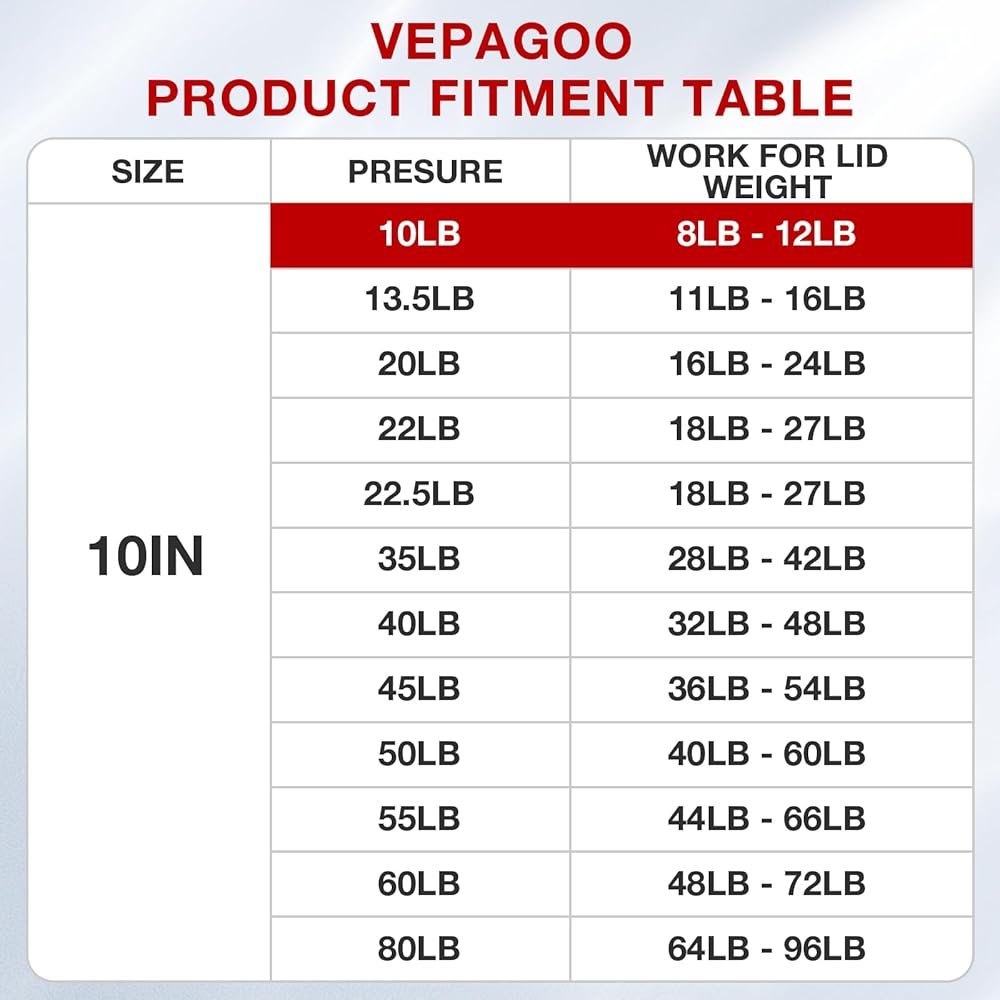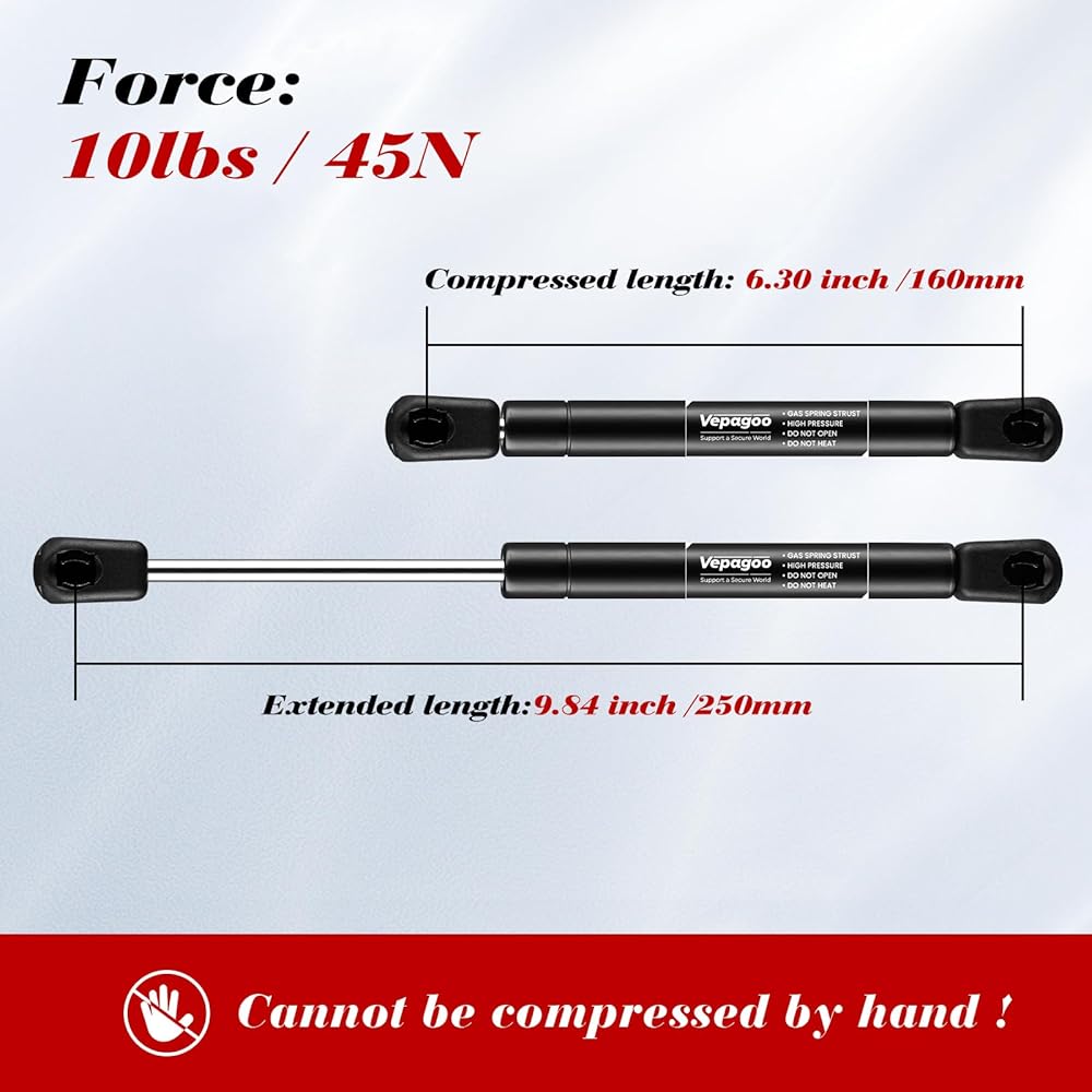 Vepagoo SX100P10 10 بوصة 10 رطل/45N دعامة زنبركية للصدمات الغاز لرفع خزانة باب أداة صندوق الألعاب، مجموعة من 2