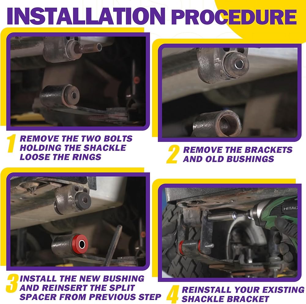 فريدة من نوعها - مجموعة جلبة زنبركية الأوراق المطورة مصنوعة من مادة البولي يوريثين عالية الجودة، والتي تُعرف بأنها جزء من المادة الخام لامتصاص الصدمات لهيكل السباق - تصميم مشطوف - متين - عمر خدمة أطول من المطاط ومواد تصنيع المعدات الأصلية. وأكمام بتصميم من قطعة واحدة - أقوى