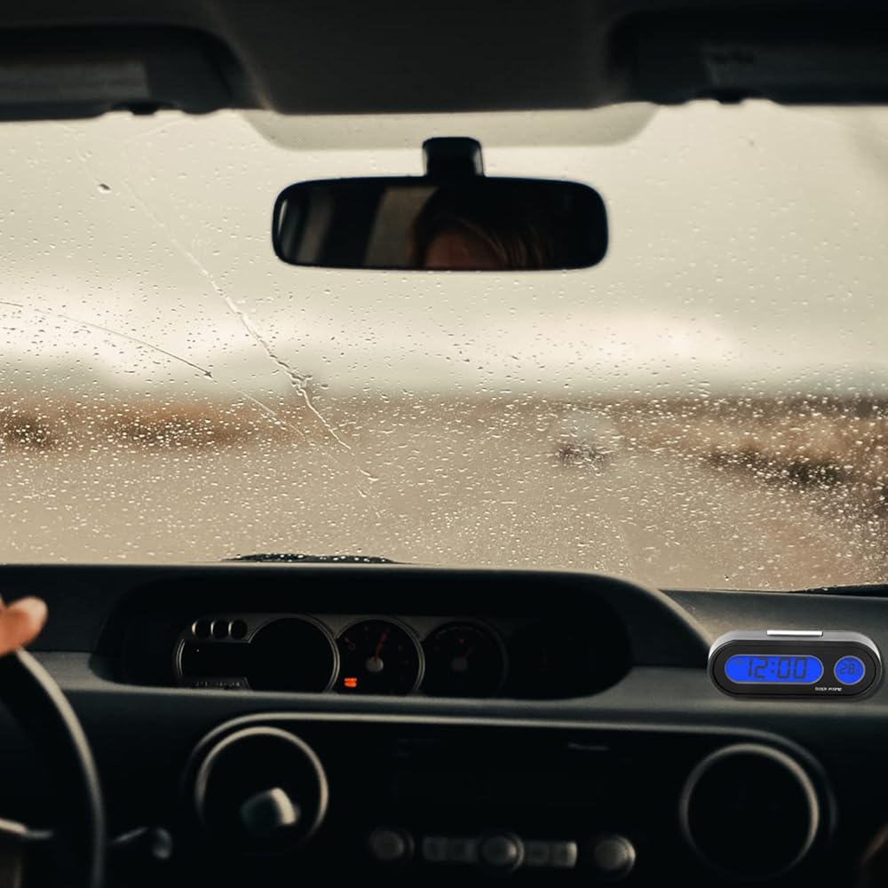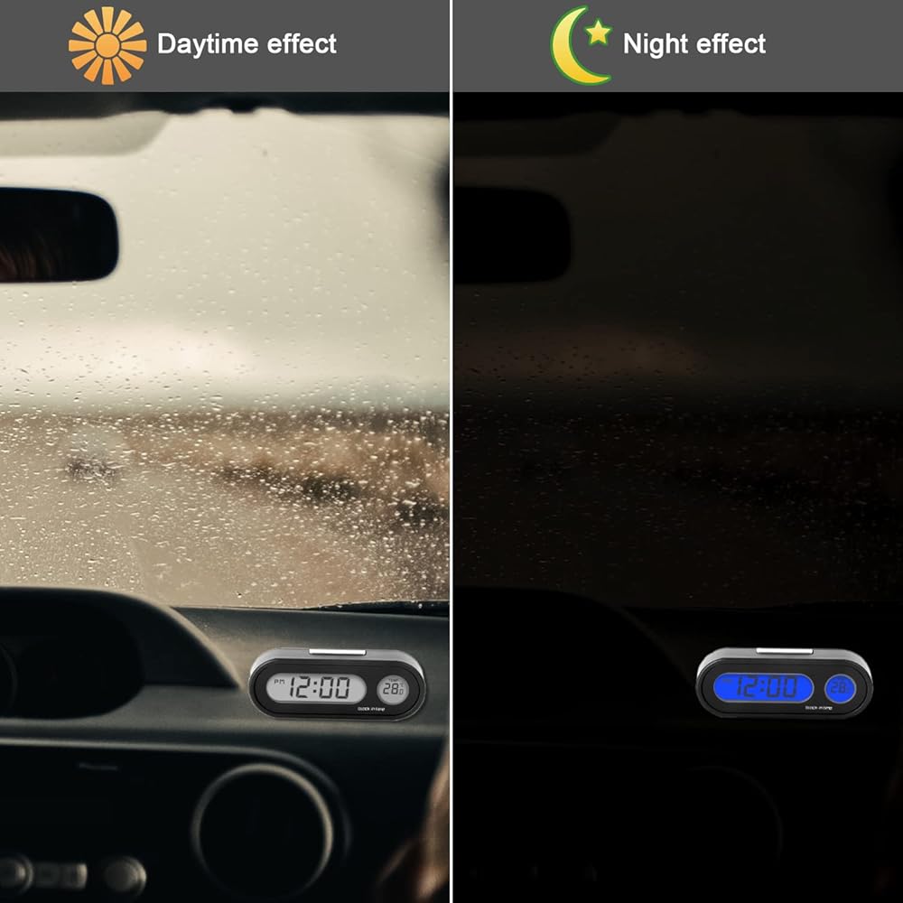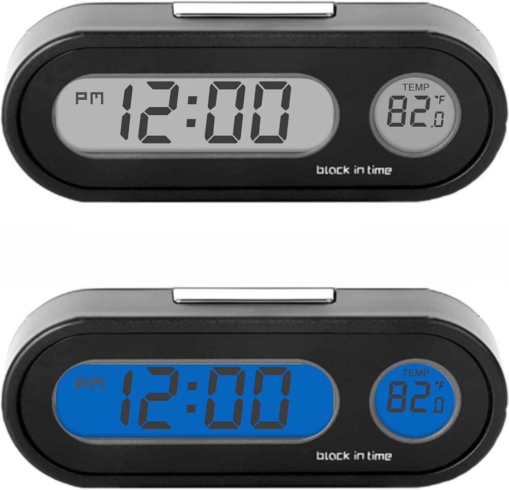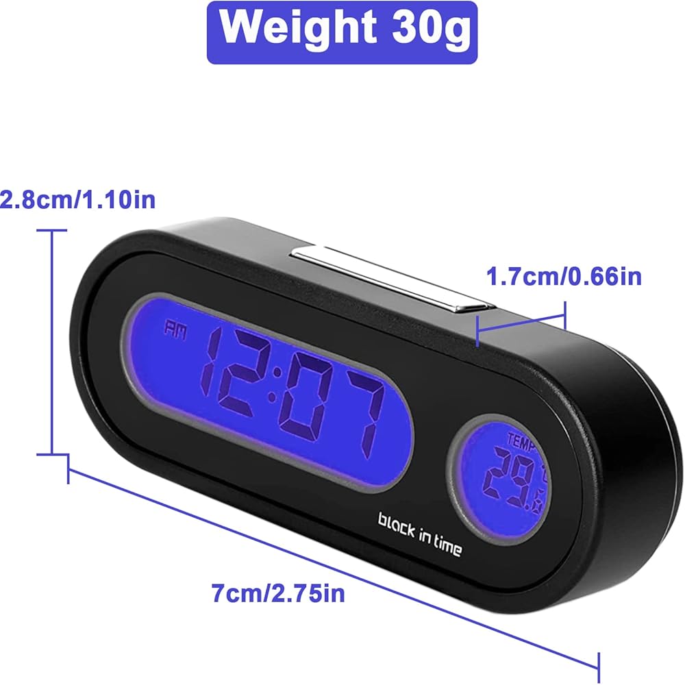 ساعات السيارة مع إضاءة خلفية زرقاء بدرجة حرارة فهرنهايت 2 في 1، ساعة إلكترونية صغيرة لساعة لوحة القيادة للسيارة، ساعة لوحة القيادة الرقمية بإضاءة خلفية LCD للمركبة لاصقة صغيرة على مدار الساعة (تشمل البطارية)