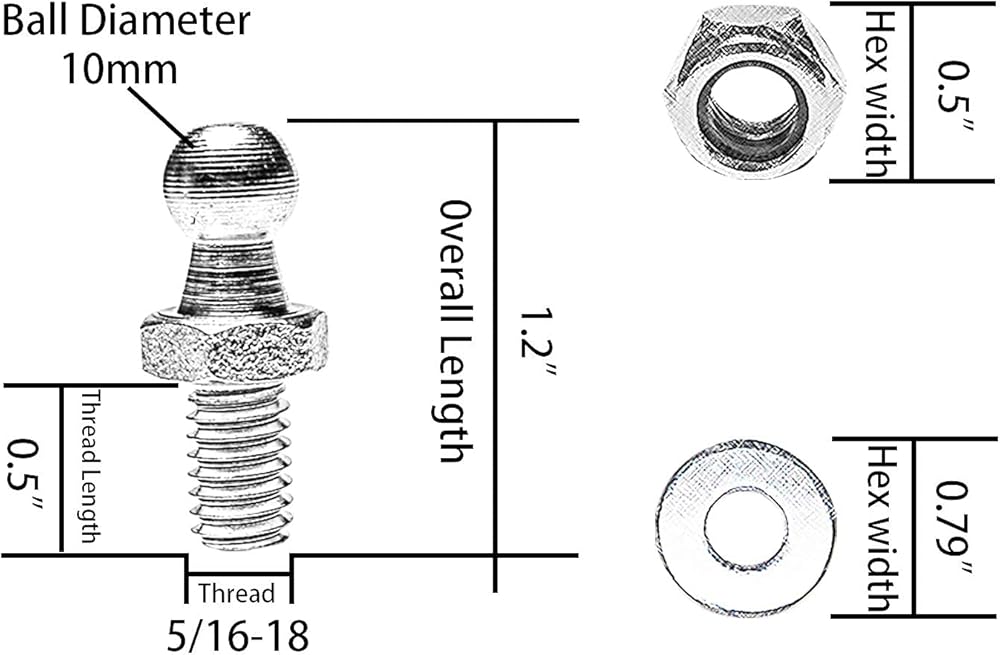 • ★Diameter - 10mm Ball Stud - 5/16-18 Thread x 1/2" Long Shank,1.2" Overall Length