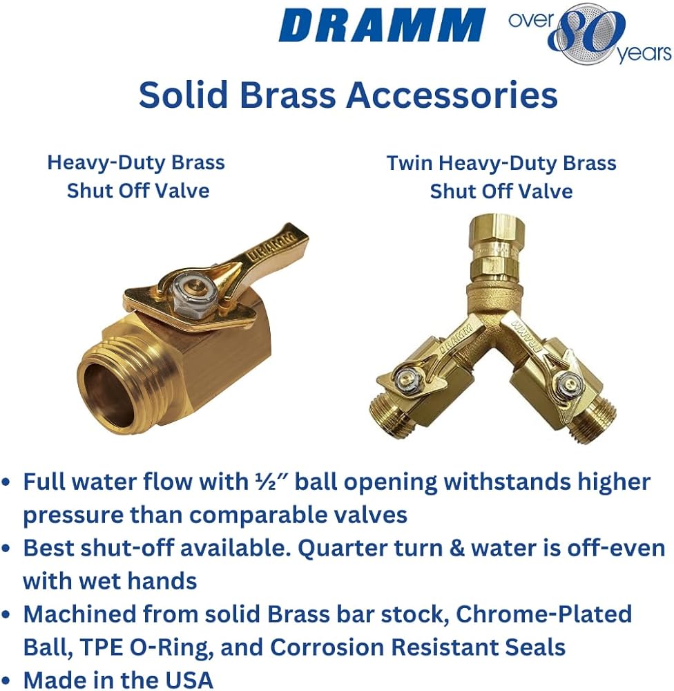 • Dramm Heavy-Duty Brass Shut-Off designed to provide fingertip water control at the end of your water hose