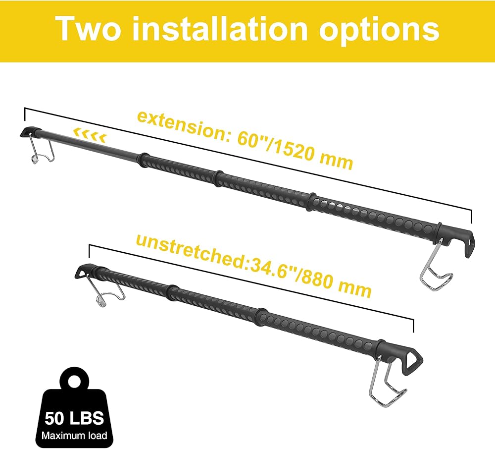 شريط شماعات السيارات عالي التحمل من Elantrip، يمتد من 34 بوصة إلى 63 بوصة، وأنابيب حديدية وغطاء حماية مطاطي للسيارات والشاحنات وسيارات الدفع الرباعي وRVS (مجموعة قطعة واحدة)