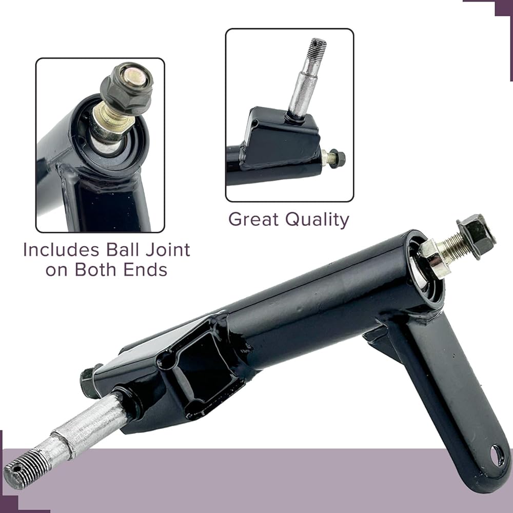 Improve your Go-Karting with the AlveyTech spindle steering knuckle designed for the Coleman KT196 196cc 6.5 Hp model. This high-quality knuckle is available in a right-side configuration. It ensures precise steering control, enhanced maneuverability, and a smoother ride. Crafted with versatility in mind, it may also fit other Go-Kart brands and models. As a crucial part of the front suspension system, spindles play a vital role in ensuring stability and maneuverability on your Go-Kart, mirroring their importance in your Go-Karts performance. Please note that minor scuffs, scratches, or cosmetic blemishes on the steering knuckles, if any, do not affect the functionality. Once installed, these knuckles remain hidden from view. It comes equipped with a ball joint, streamlining the installation process and ensuring a secure and efficient connection. Upgrade your Go-Kart's steering responsiveness and overall performance with the reliable and durable construction of the AlveyTech right-side spindle steering knuckle.