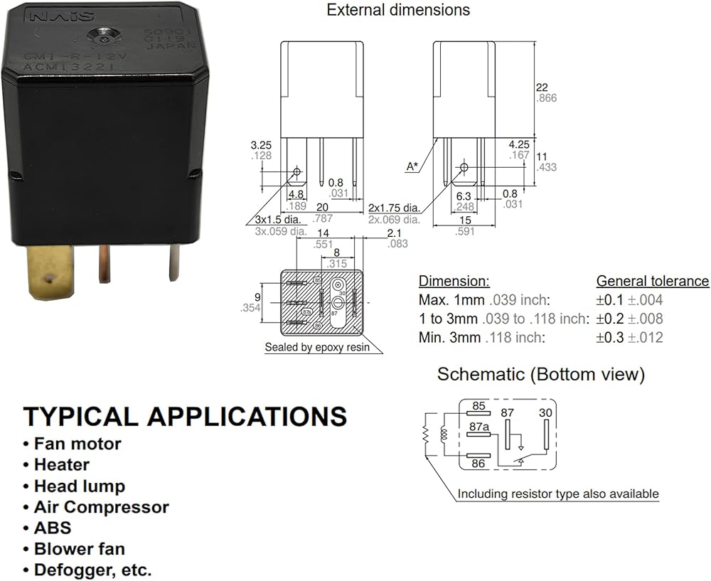 Typical applications: Fan motor, Heater, Head lump, Air Compressor, ABS, Blower fan, Defogger, etc.