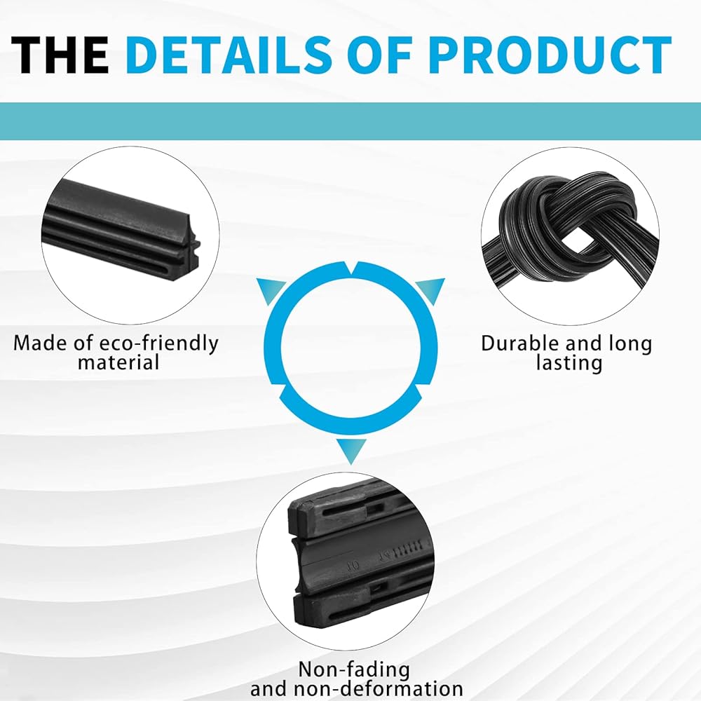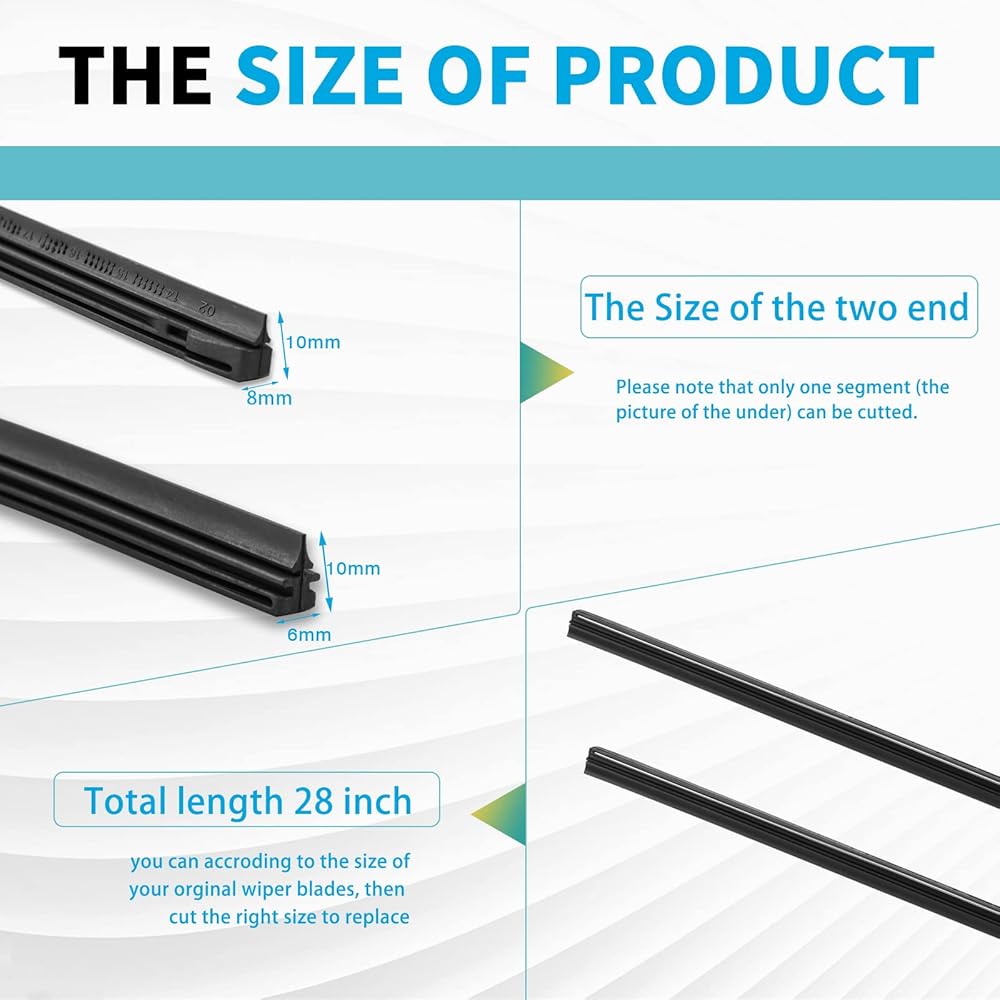 【Ajustable Length】We provide you pack of 4-28inch (700mm) cuttable wiper strips, this size is suitable for most frame and hybrid wiper blades, and you can cut them according to the size of the original wiper, this wiper blade refill is a great replacement for the old rubber wiper blade refill.
