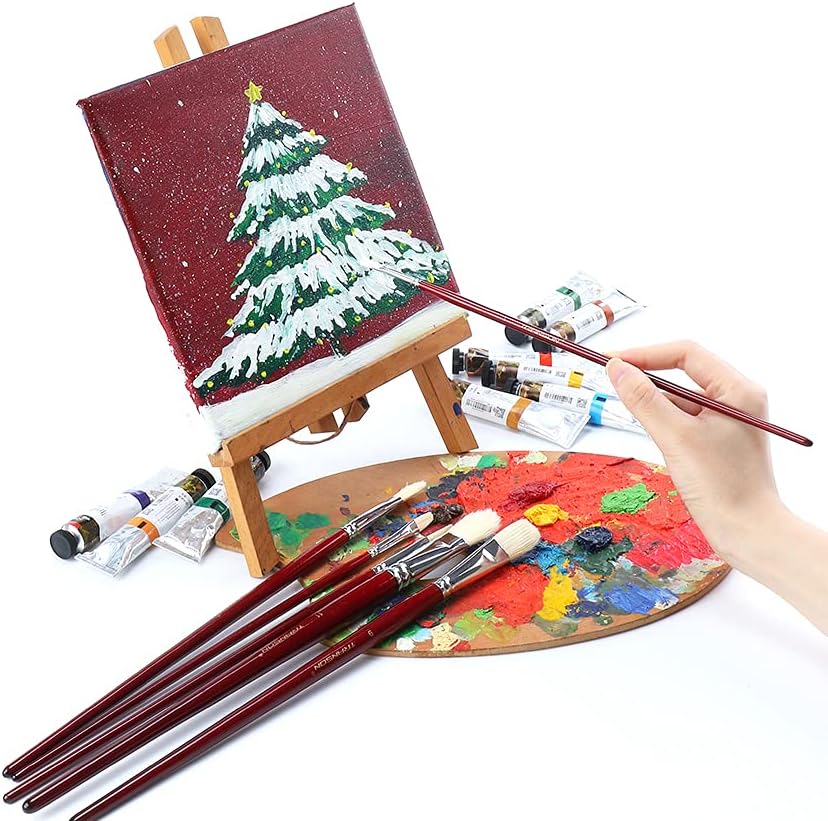 فرش طلاء فيلبرت احترافية - مجموعة فرش طلاء فيلبرت ذات مقبض طويل مكونة من 6 قطع، مناسبة للطلاء الكثيف مثل الأكريليك والألكيد والزيت وما إلى ذلك.