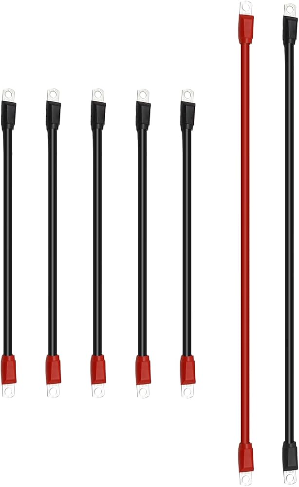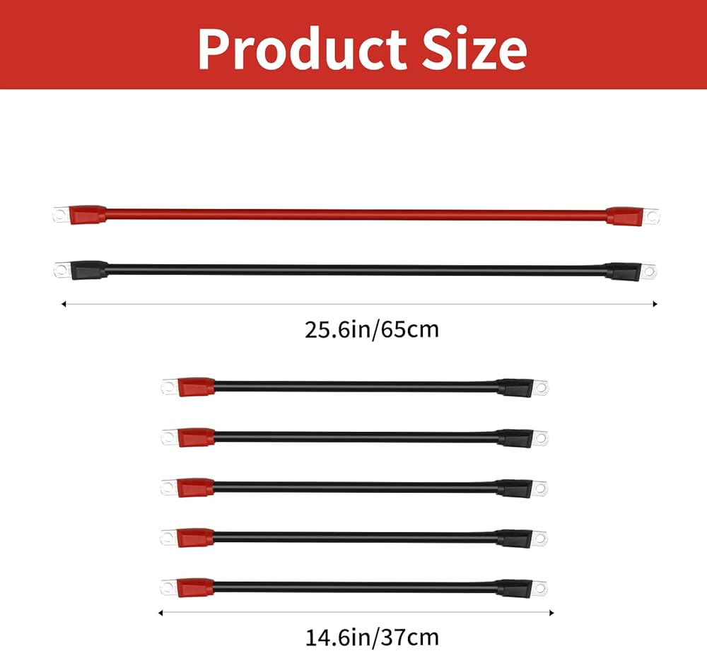 The package includes 1 red cable measuring 25 inches, 1 black cable measuring 25 inches, and 5 cables measuring 13.97 inches each. With this comprehensive set, you'll have all the necessary cables to complete your battery installation.