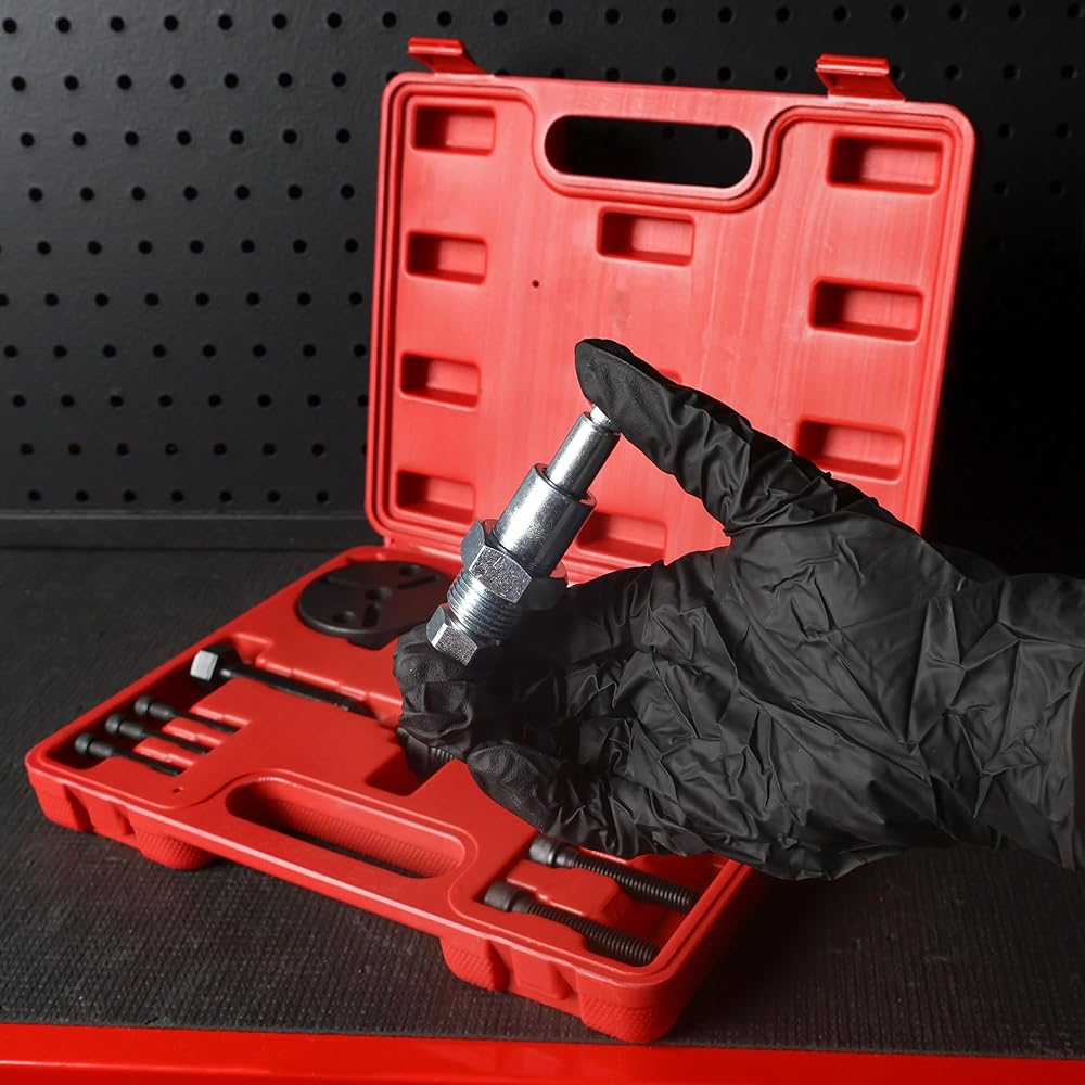 استبدال مجموعة قابض تكييف الهواء: استخدم مجموعة أدوات إزالة قابض ضاغط الهواء ABN - قابض قابض التيار المتردد لمكيف الهواء التلقائي للسيارة لإزالة أو تثبيت أو إعادة بناء القوابض الموجودة في ضواغط FS6 وC171 و6P و148؛ ضواغط تكييف الهواء GM R4 وA6 وHR-6 وDA-6 وV؛ ضواغط الصنفرة SD 505، 507، 575، 708، و709؛ تطبيق واسع للمركبات بما في ذلك GM، وFord، وChrysler، والمستوردات، وغيرها من الماركات والموديلات؛ راجع دليل مالك السيارة للحصول على قائمة بالضواغط المتوافقة