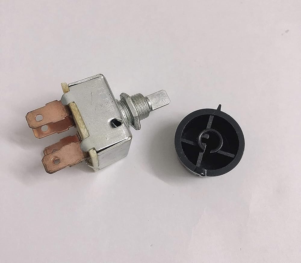 New, universal air conditioner, rotary 3-speed blower switch, with plastic "fan" knob, 5 shovel terminals and 1 / 4 inch (about 0.6 cm) knob shaft. The length of the threaded shaft is about 3 / 8 inch (about 1.9 cm) (the body is about 2.54 cm x 2.54 cm square, and the diameter of the threaded shaft is 2.22 cm