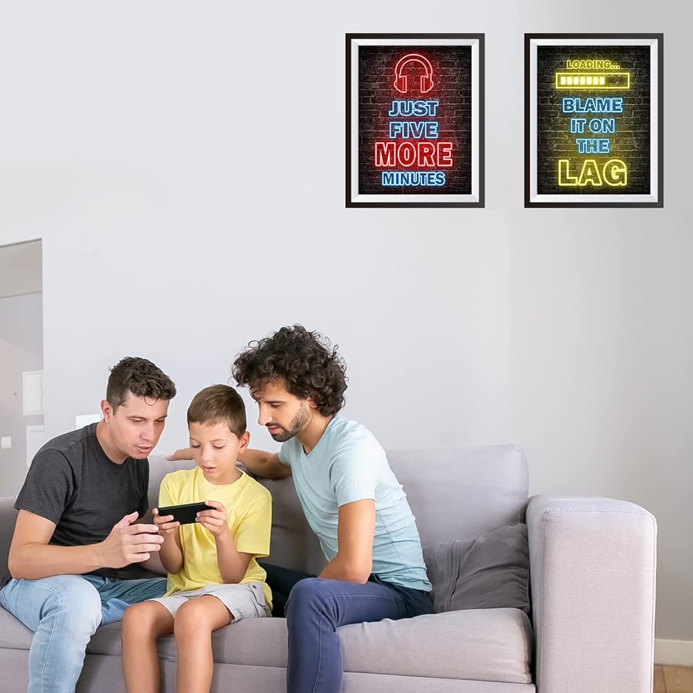 مجموعة ملصقات ألعاب نيون مطبوعة مكونة من 4 قطع (8 × 10 بوصة)، ديكورات غرفة الأولاد لغرفة النوم، لوحة فنية جدارية لألعاب الفيديو، غرفة نوم الصبي المراهق، غرفة الألعاب، بدون إطارات