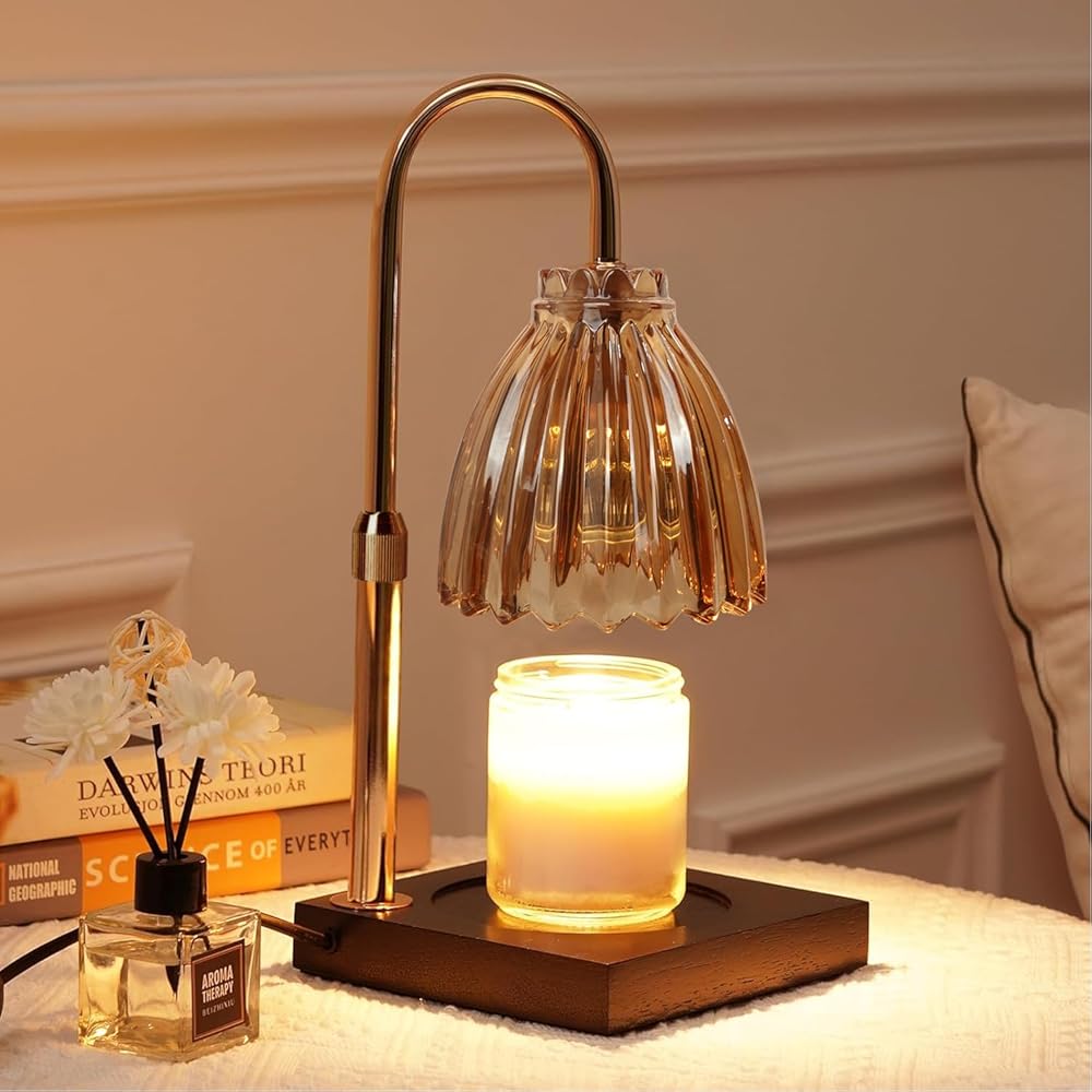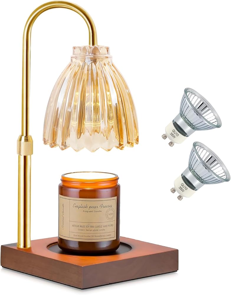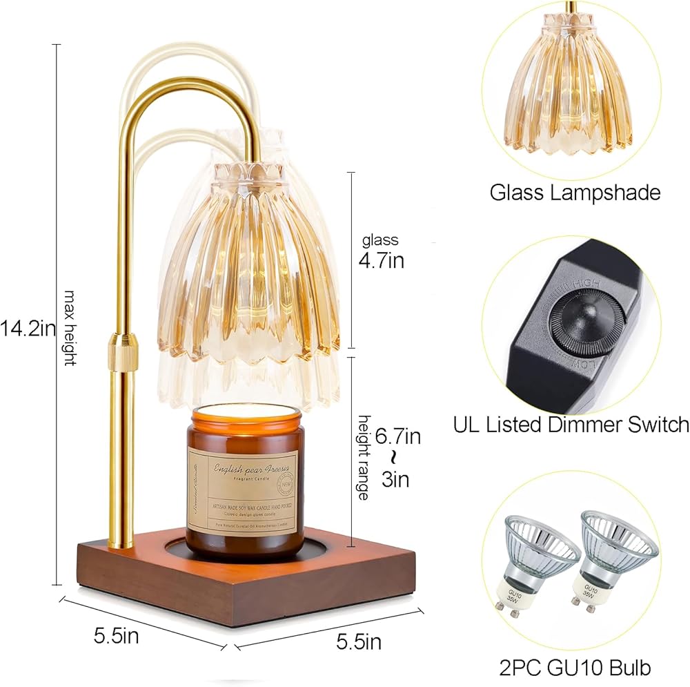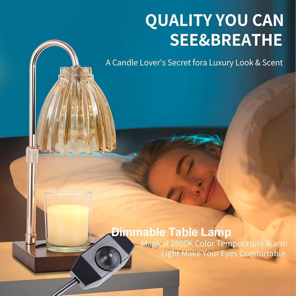 مصباح تدفئة الشموع من دوتلايت، ضوء تدفئة الشموع الكهربائية الخافت، زجاج كهرماني قابل للتعديل لتدفئة شموع الجرة، هدية عيد ميلاد للأم والصديقات ديكور المنزل مع مصباحين