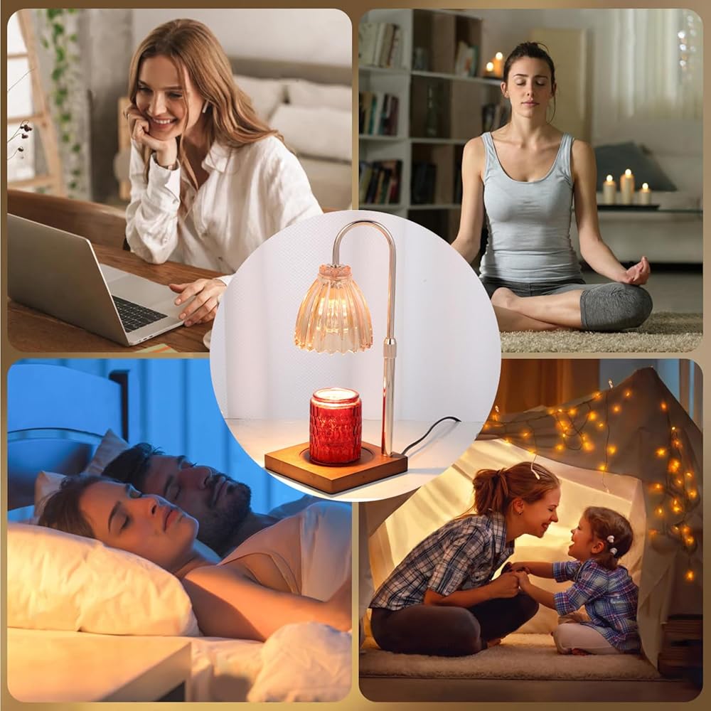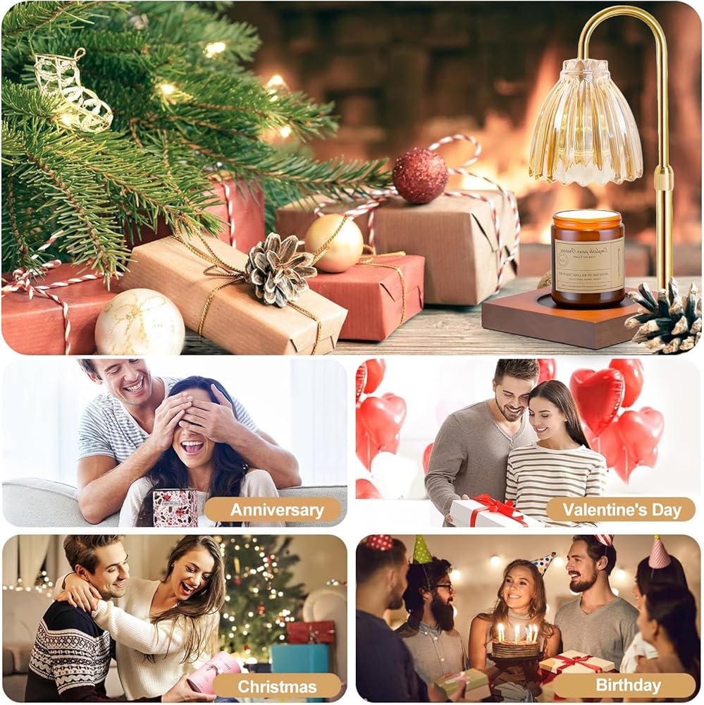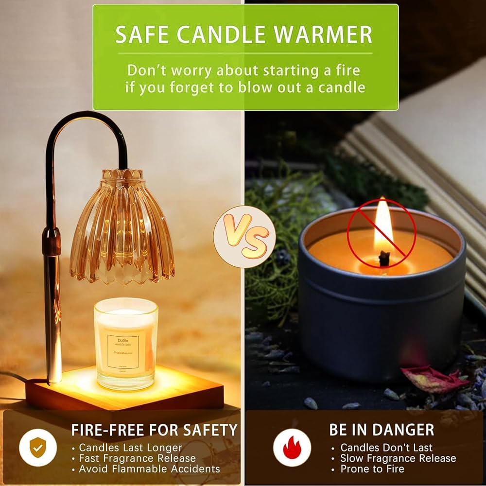مصباح تدفئة الشموع من دوتلايت، ضوء تدفئة الشموع الكهربائية الخافت، زجاج كهرماني قابل للتعديل لتدفئة شموع الجرة، هدية عيد ميلاد للأم والصديقات ديكور المنزل مع مصباحين
