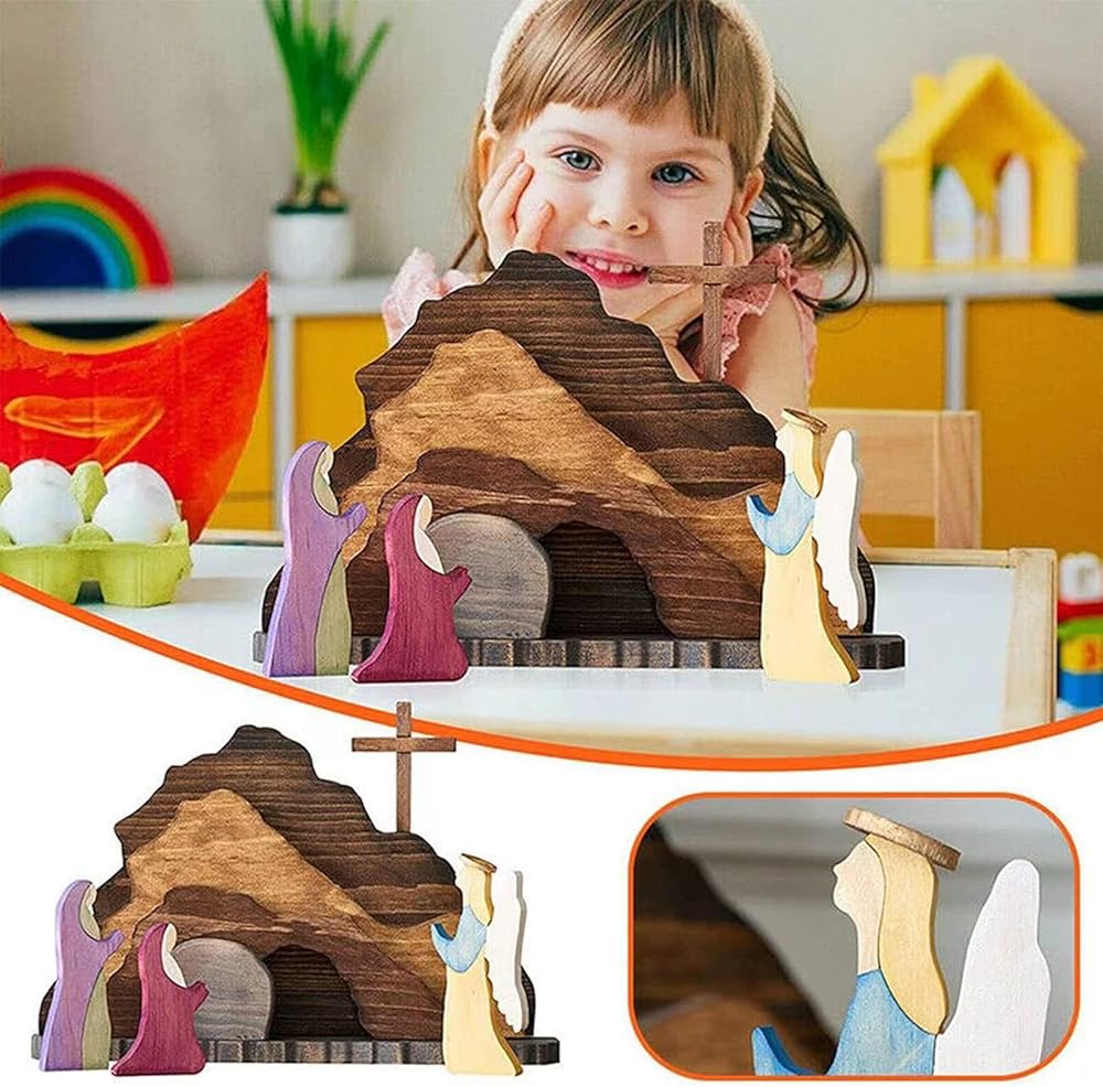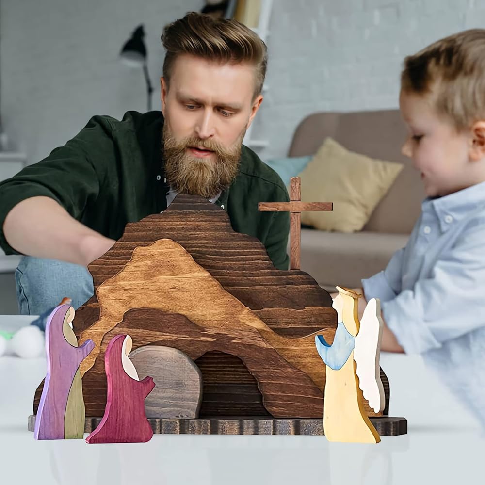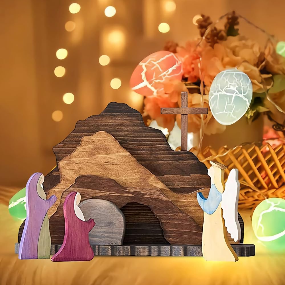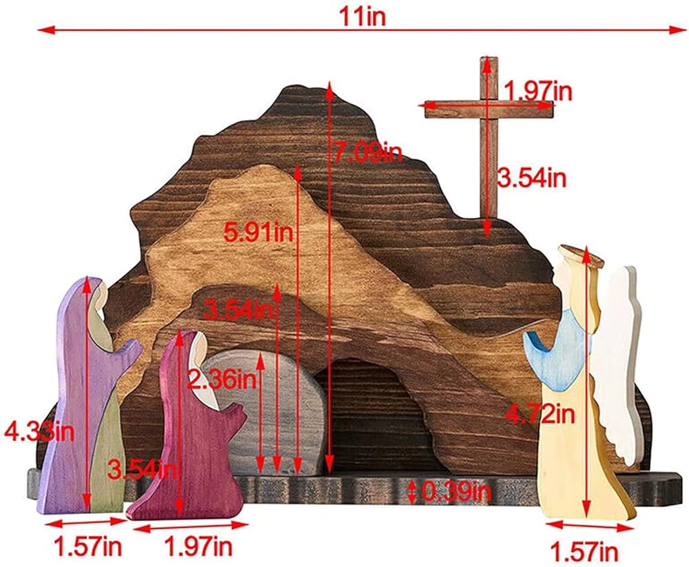 Easter Resurrection Scene Set, Easter Wooden Decorations for the Home Table, Spring Christian Home Figurine Ornament Cross Risen Christ Figurine Decor Easter Crafts
