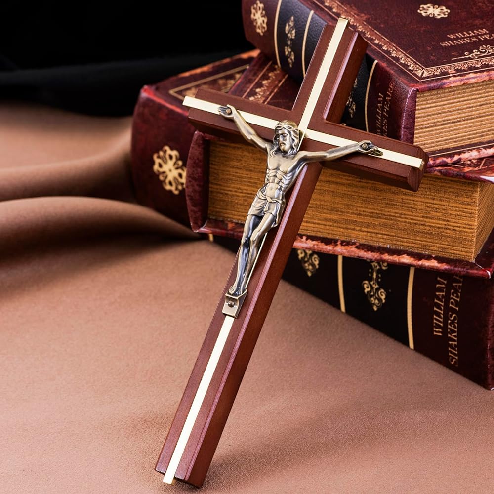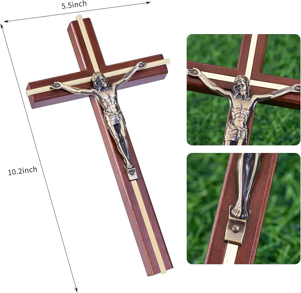 【جودة استثنائية】تم تصميم صليب الحائط بشكل جيد بمعدن ذهبي في منتصف سيقان الخشب، وقد قمنا بصقل السطح المتقاطع خصيصًا ليكون ناعمًا ووضع طلاء صديق للبيئة ليدوم طويلاً، إنه ديكور متقاطع كاثوليكي قوي للجدار الذي يثير الروح القدس.