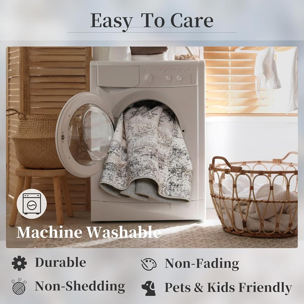 يمكن غسله في الغسالة: تصميم ذو وبر منخفض لا يتساقط مع نسيج محكم وكثيف يجعل سجادنا أكثر متانة وسهل التنظيف والصيانة. الألياف الأقصر أقل عرضة لحبس الأوساخ والحطام. التنظيف المنتظم بالمكنسة الكهربائية مهم لإزالة الأوساخ والغبار والحطام. .للغسيل في الغسالة، يرجى استخدام دورة لطيفة، والماء البارد، ومنظف خفيف.