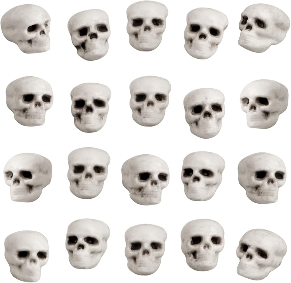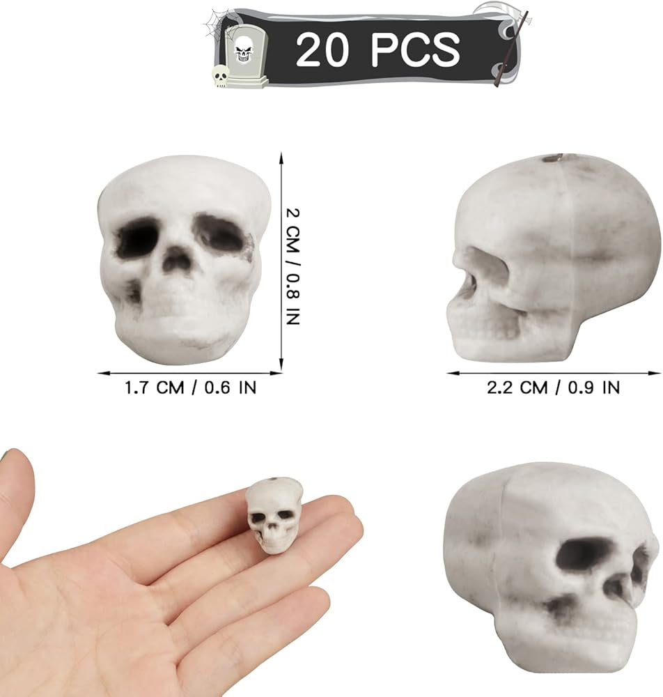 20 قطعة من جماجم الهالوين ذات مظهر واقعي، رؤوس جماجم صغيرة مخيفة للهالوين هيكل عظمي بشري جمجمة رأس جمجمة بلاستيكية لحفلات الهالوين ديكور طاولة المقبرة، منزل مسكون، لوازم صور الدعامة