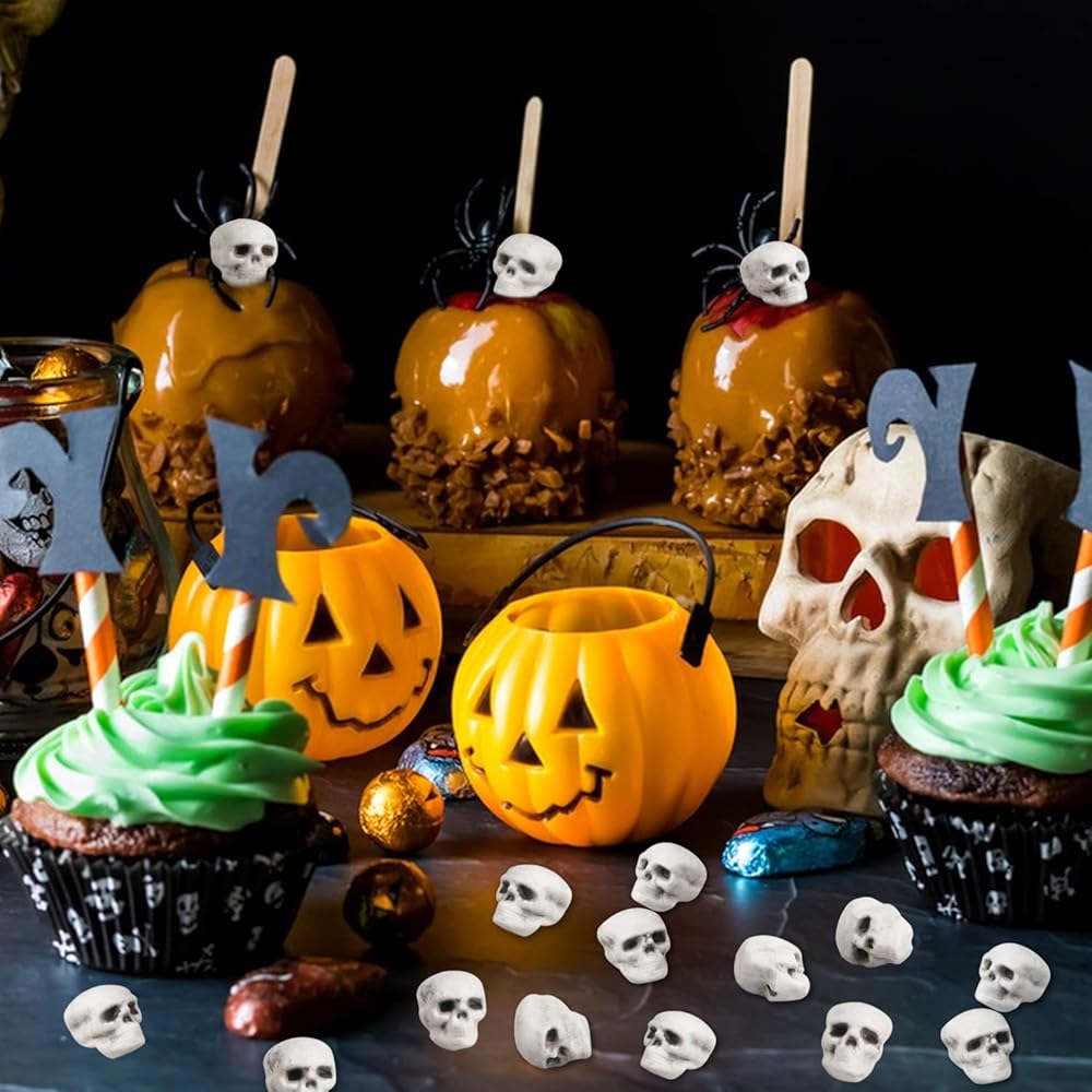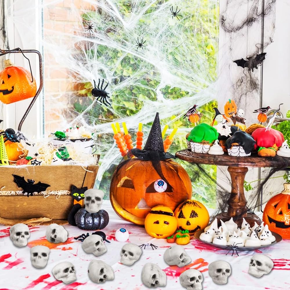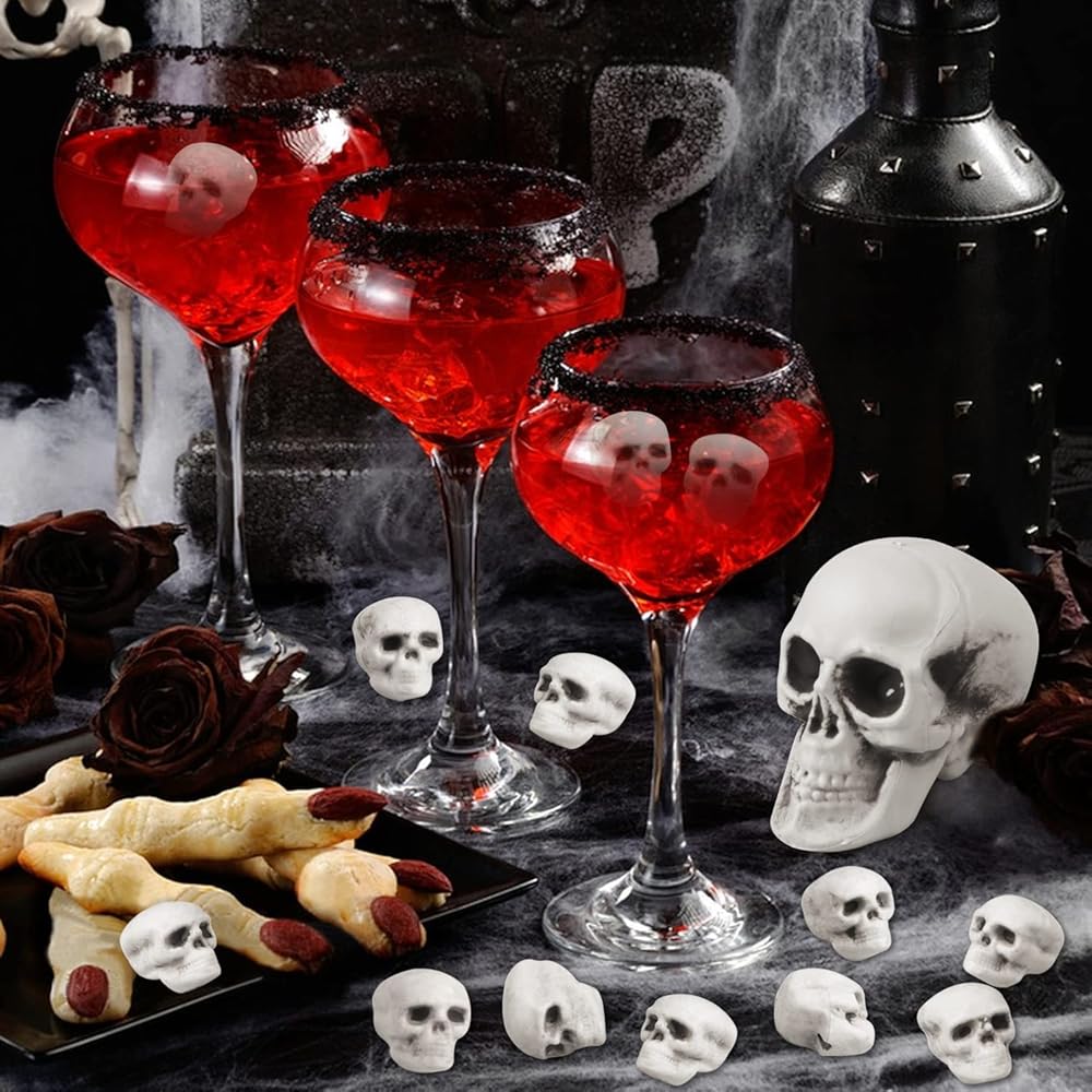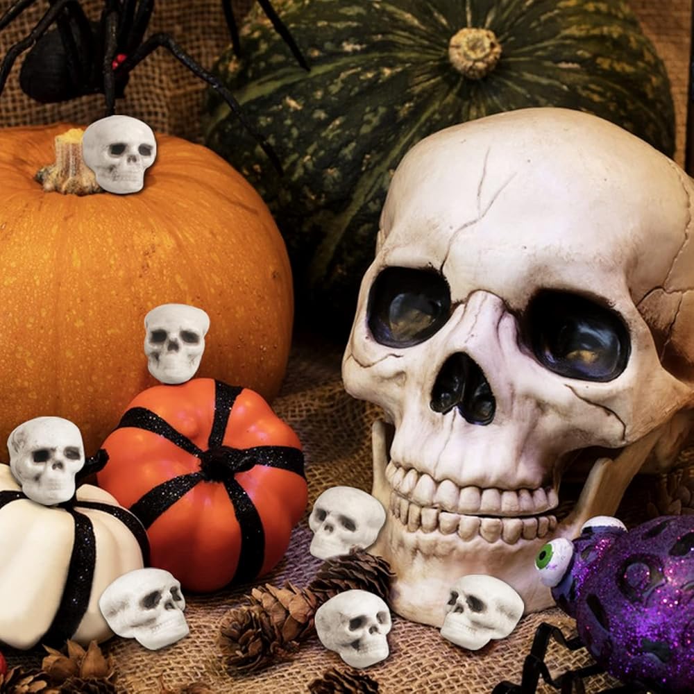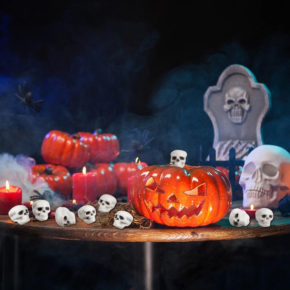 • 💀 اختيار مثالي للهالوين - رؤوس جمجمة الهالوين الصغيرة هذه رائعة لديكورات حفلات الهالوين، ومفضلات حفلات الهالوين، والحفلات ذات الطابع الهيكلي، وديكورات الرعب للمنزل، وإكسسوارات منزل الجمجمة والمناسبات الأخرى. تُستخدم على نطاق واسع لديكورات حفلات الهالوين.