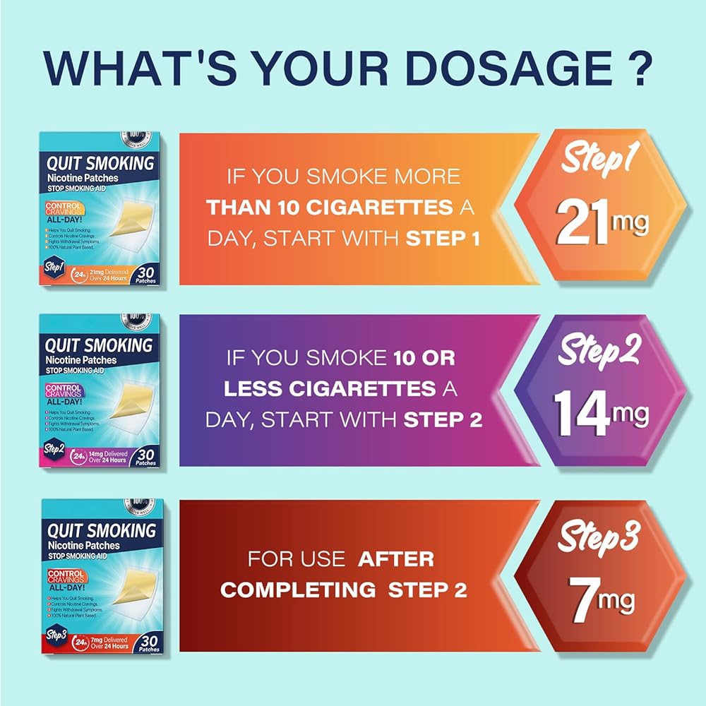 Stop Smoking Aid - The 21mg stop smoking patches is right for you if you smoke more than 10 cigarettes a day. Use 1 patch daily according to the direction. To quit successfully, you must be motivated to quit, patience and time are needed!