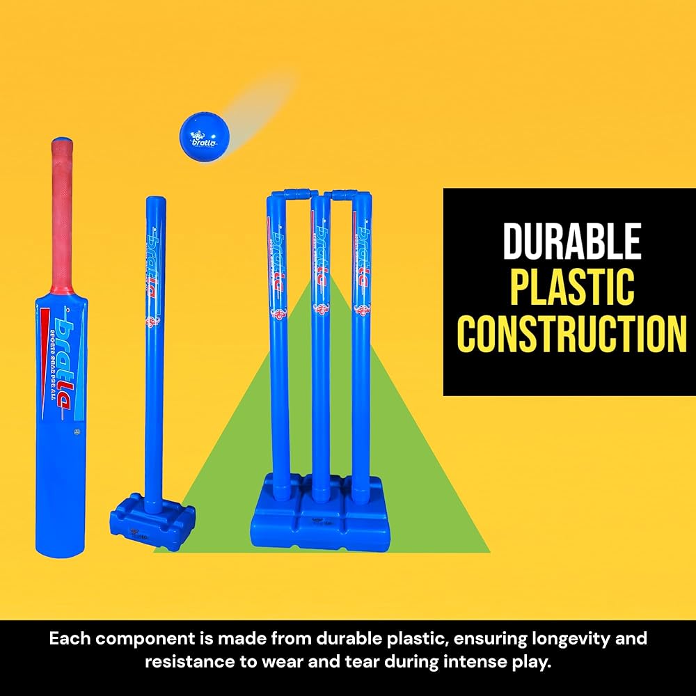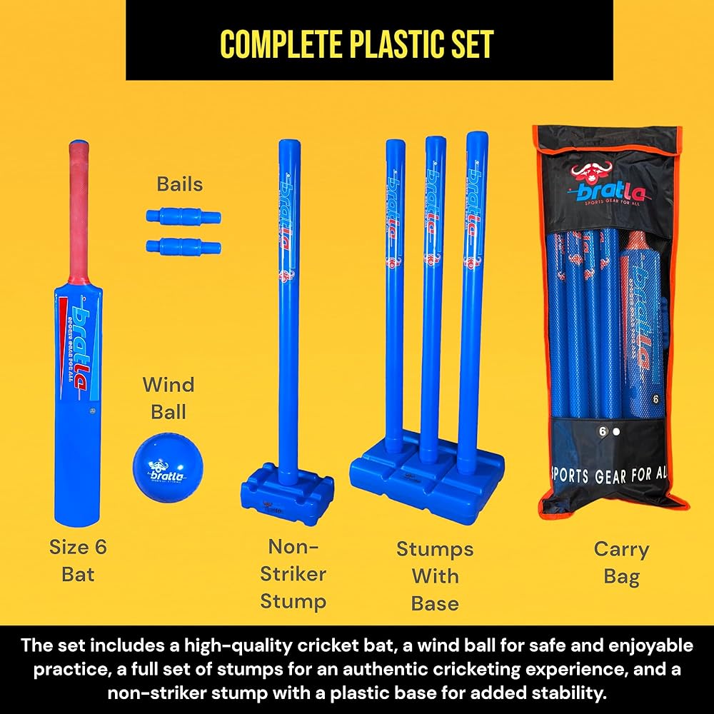 مجموعة الكريكيت الكاملة: تشتمل المجموعة على مضرب كريكيت عالي الجودة، وكرة رياح لممارسة آمنة وممتعة، ومجموعة كاملة من الجذوع لتجربة كريكيت أصلية، وجذع غير مهاجم بقاعدة بلاستيكية لمزيد من الثبات.