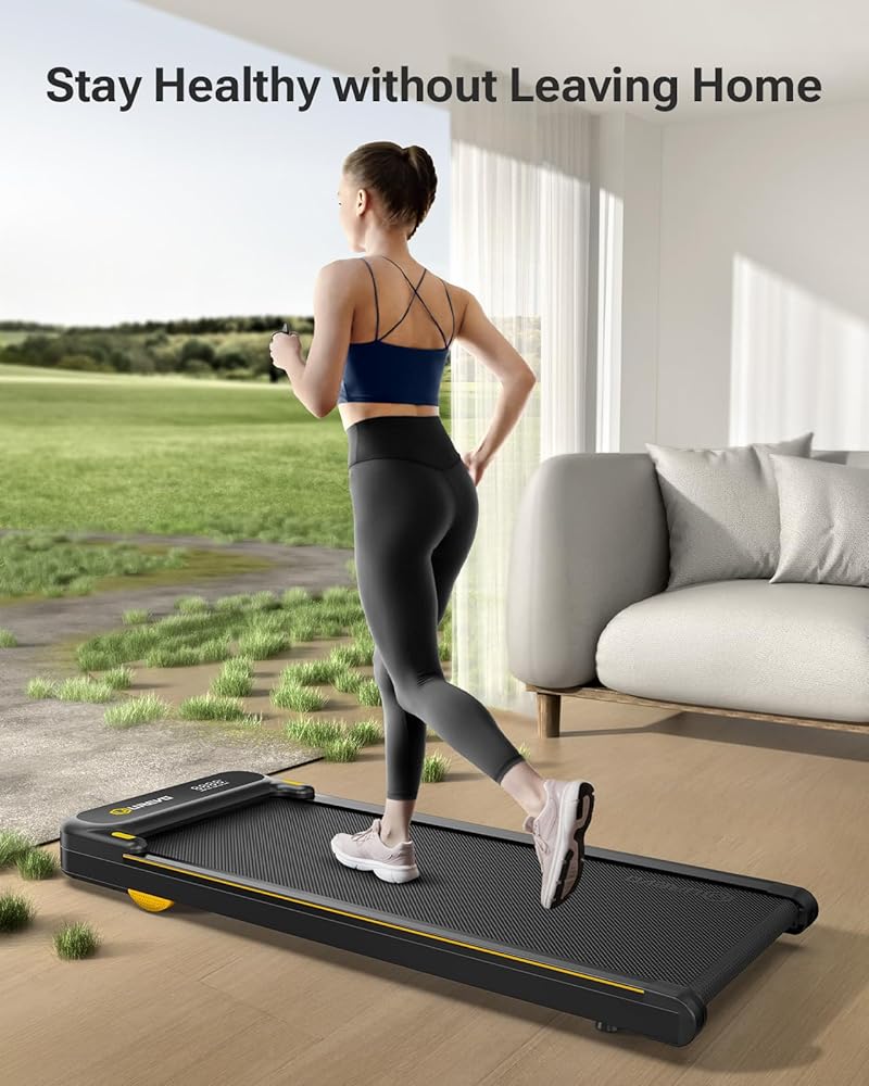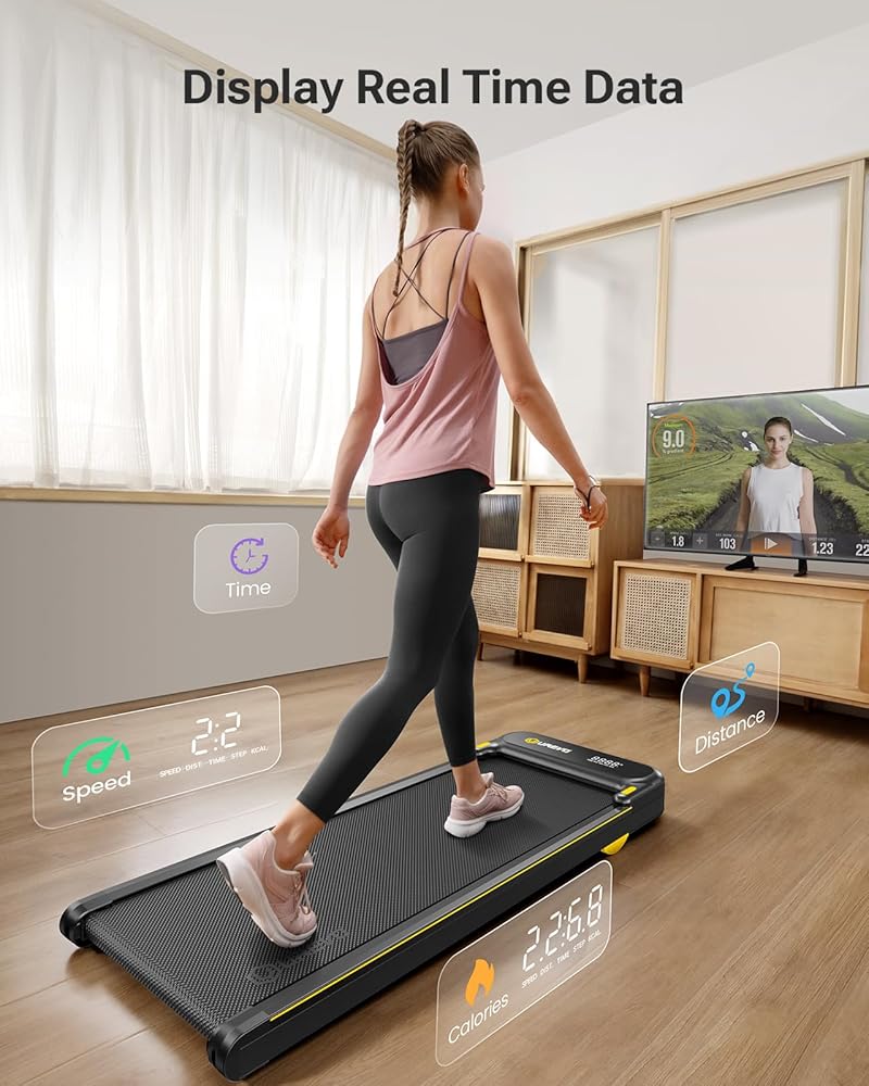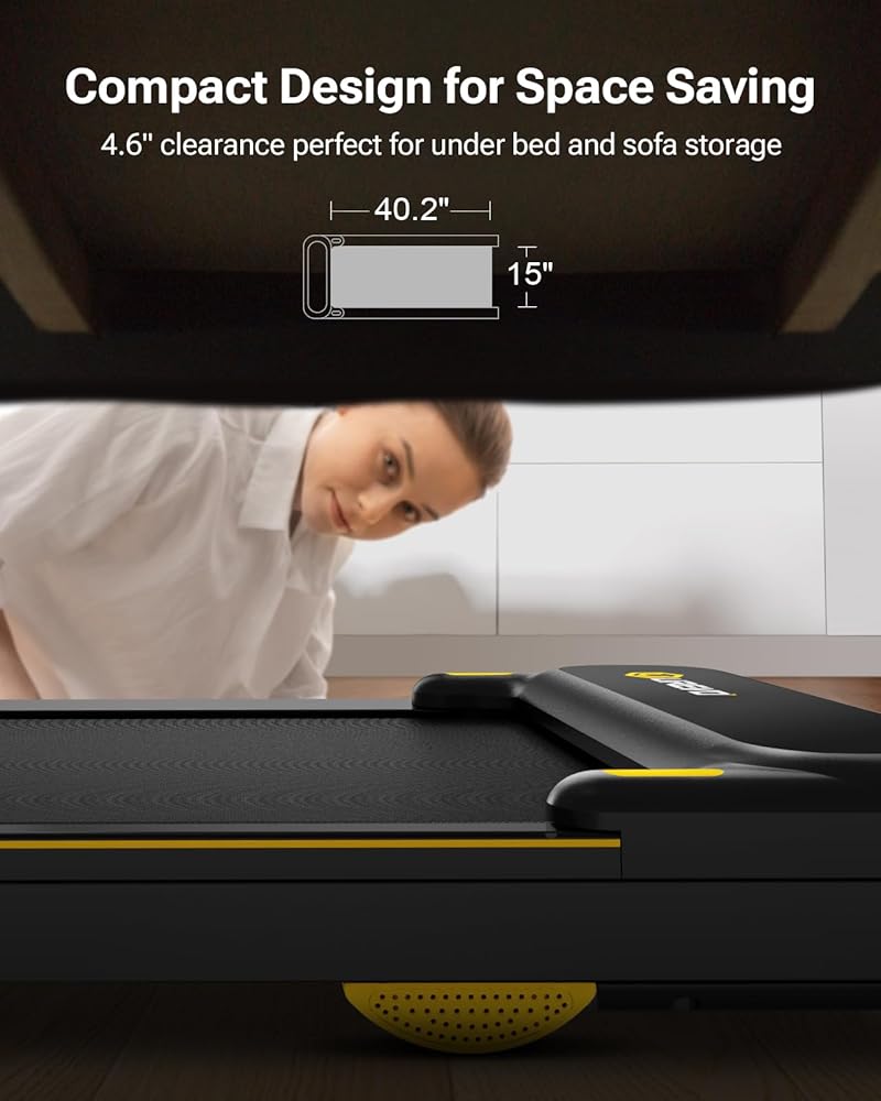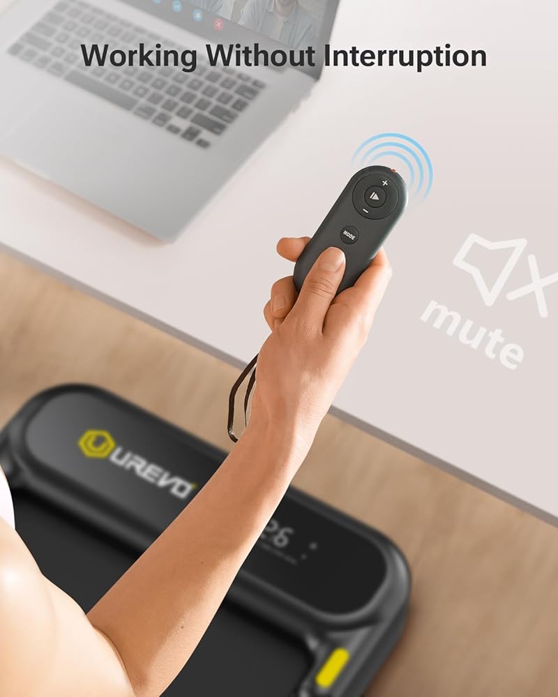 وسادة مشي 2 في 1 أسفل المكتب: نطاق السرعة 0.6-4 ميل في الساعة، قابل للتعديل ليناسب احتياجاتك. ليست مناسبة للركض فحسب، بل يمكن استخدامها أيضًا تحت المكتب. جهاز التحكم عن بعد مزود بمغناطيس يمكن تثبيته بجهاز المشي عند عدم استخدامه لمنع فقدانه.