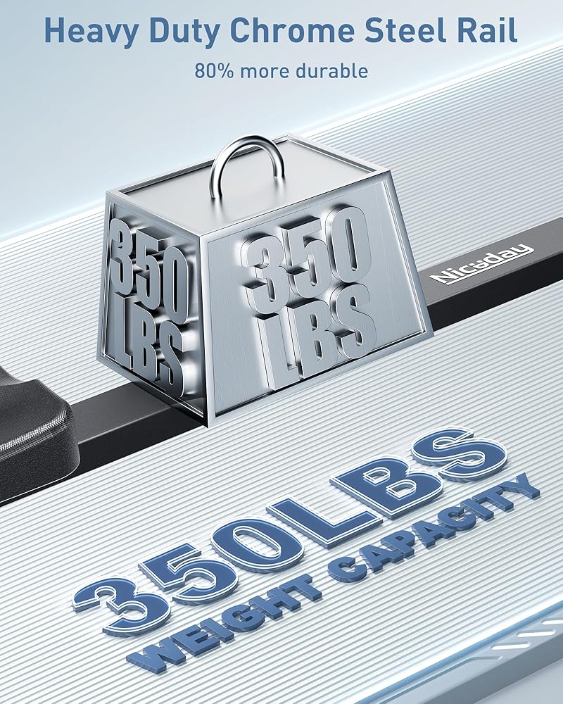 【مصممة لمتانة طويلة الأمد】توفر السكة الفولاذية المصنوعة من الكروم دعمًا آمنًا للمستخدمين حتى 350 رطلاً. يهدف البناء القوي والمواد المتميزة إلى تحقيق المتانة طويلة الأمد، مما يرافقك في رحلتك لتصبح نسخة أفضل من نفسك.
