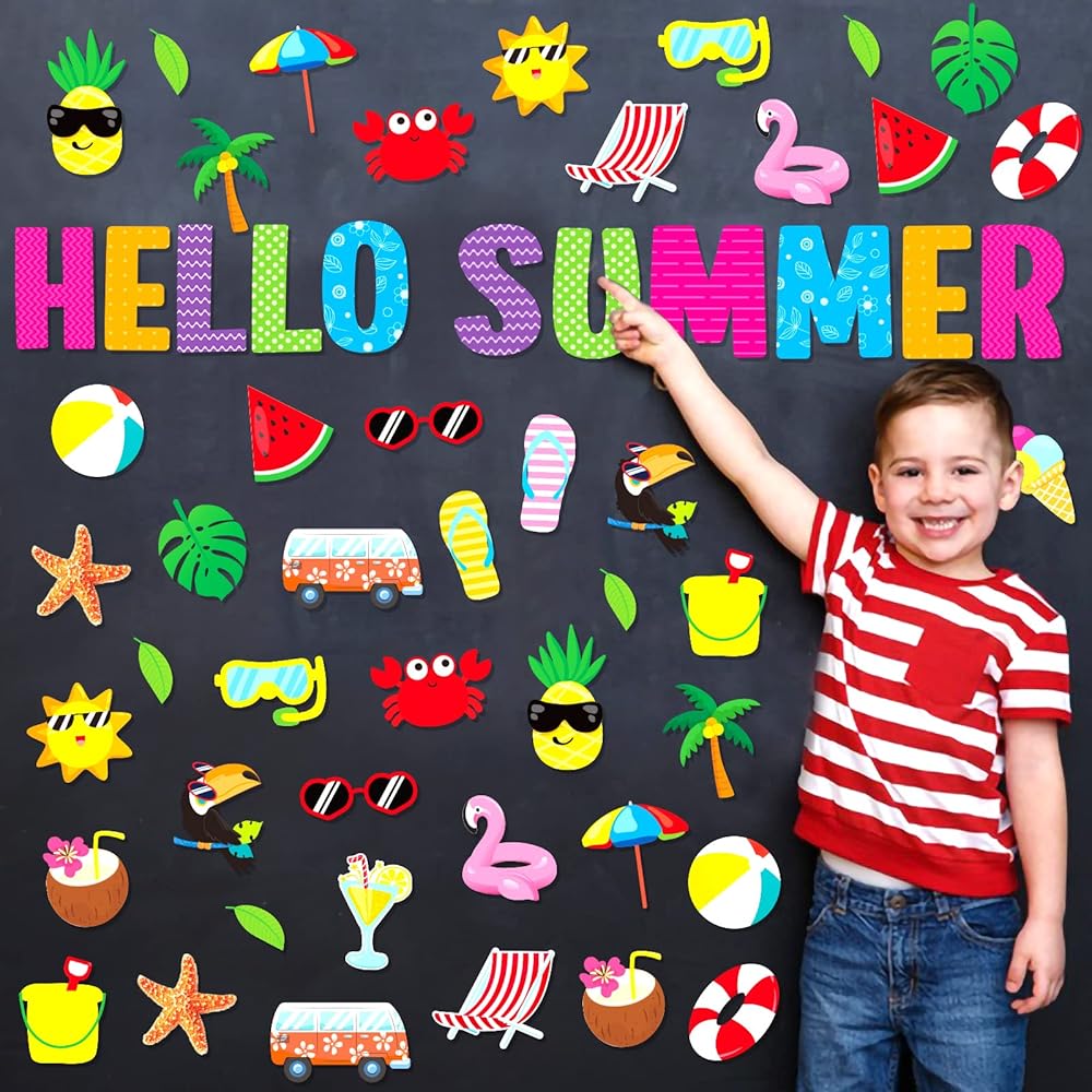 يمكن استخدام ديكورات لوحات الإعلانات الصيفية الزاهية والملونة هذه ليس فقط لتزيين لوحات الإعلانات في الفصل الدراسي،