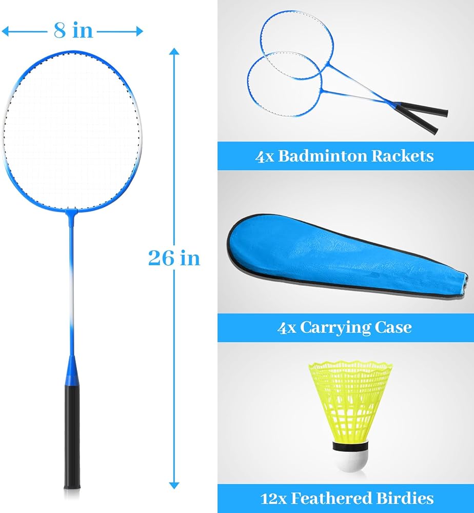 مناسبات قابلة للتطبيق على نطاق واسع: مجموعة كرة الريشة هذه عملية ومناسبة للاستخدام في الهواء الطلق والساحات الخلفية وصالات الألعاب الرياضية وغيرها من الأماكن، والتي يمكن أن تبقي عائلتك أو شركائك بعيدًا عن المنتجات الإلكترونية والاستمتاع بالهواء النقي في الهواء الطلق.