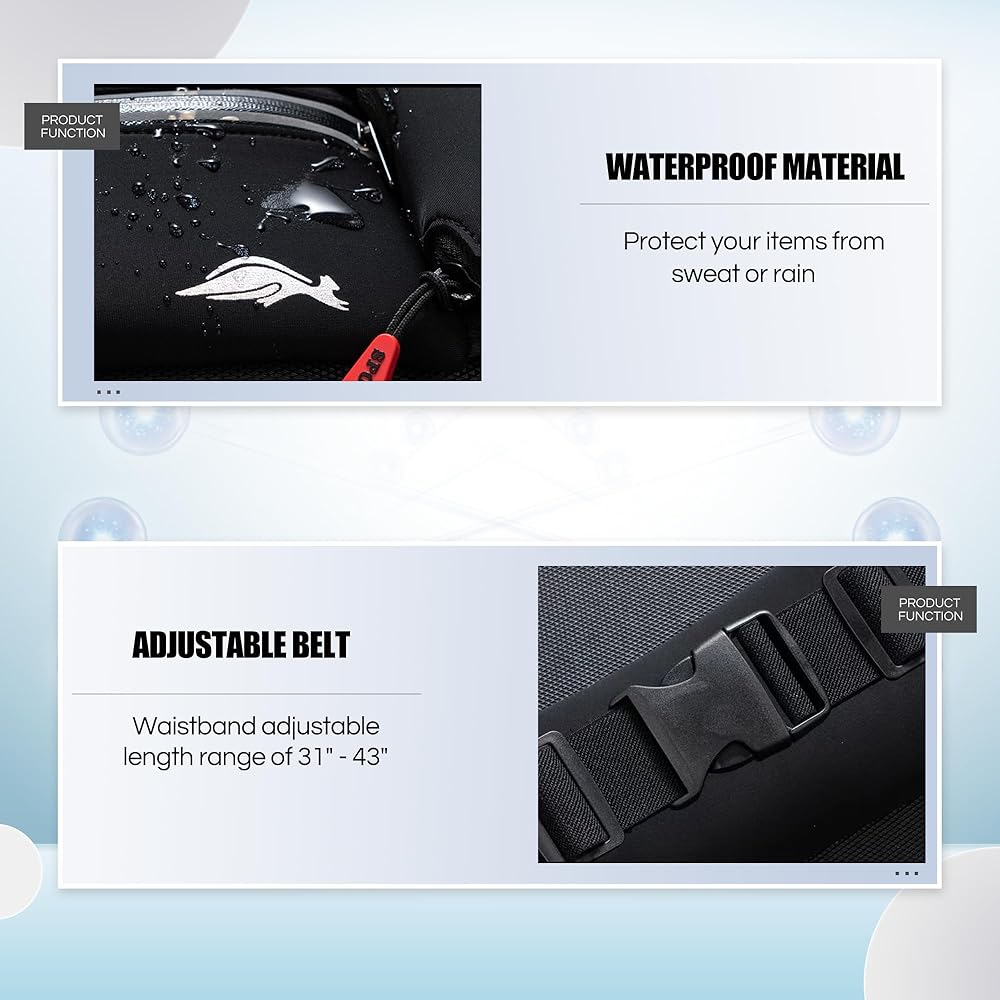 【تصميم خفيف الوزن ومتين وعاكس】: حقيبة الخصر مصنوعة من نسيج عالي الجودة ومسامي ومقاوم للماء، والذي يمكنه حماية محتويات الحقيبة بشكل أفضل من البلل بسبب المطر. تنعكس بقوة تحت المصابيح الأمامية للسيارة، ويضمن الملصق العاكس الموجود على الجيب سلامتك أثناء الجري ليلاً.