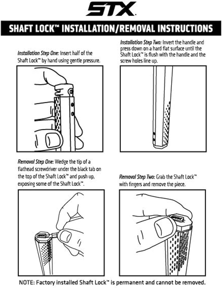 Shaft lock helps give a better fit between the head and handle of your stick. It cuts down on head rattle be making sure your head screws fit snugly every time.
