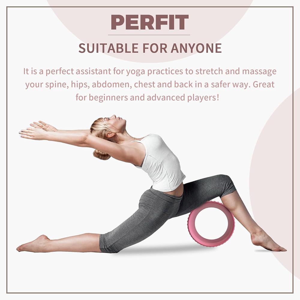 【تصميم مريح】: عجلة اليوجا بيرفيت هي عجلة مصممة هندسيًا مع تصميم متين إلى حد ما لتخفيف آلام الظهر والتمدد. كما أنه فعال في معالجة الأعراض المتعلقة بأنماط الحياة المستقرة، ووضعيات الجلوس غير الصحيحة، وعدم ممارسة الرياضة، وإصابات الظهر. تم تصميم عجلة Perfit الخلفية خصيصًا لك، مما يعدك بمفاجأة فريدة من نوعها!