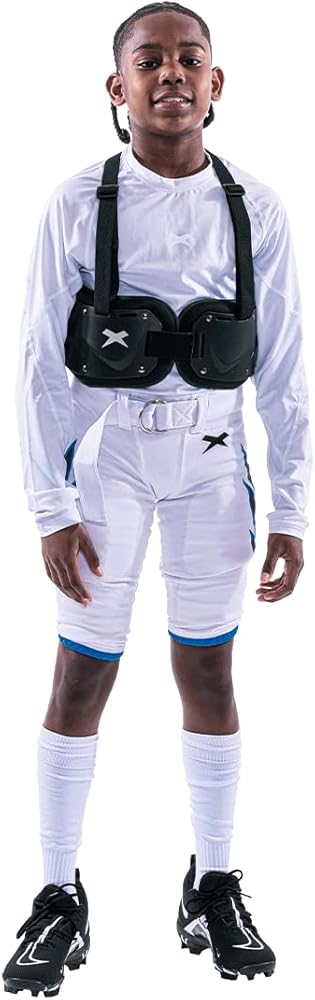 ديناميكي: يتناسب مع شريطين مرفقين متينين يندمجان بسلاسة مع وسادات الكتف، هذا اللوح الخلفي مثالي للاعبين الشباب.