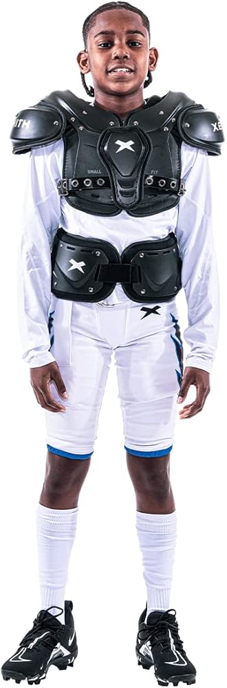واقي أساسي قابل للتعديل لكرة القدم من Xenith - معدات حماية للضلع وأسفل الظهر للرياضات عالية التأثير - مادة ذات فتحات تهوية تتكامل مع وسادات الكتف - مقاسات صغيرة (شبابية) وكبيرة (جامعة)