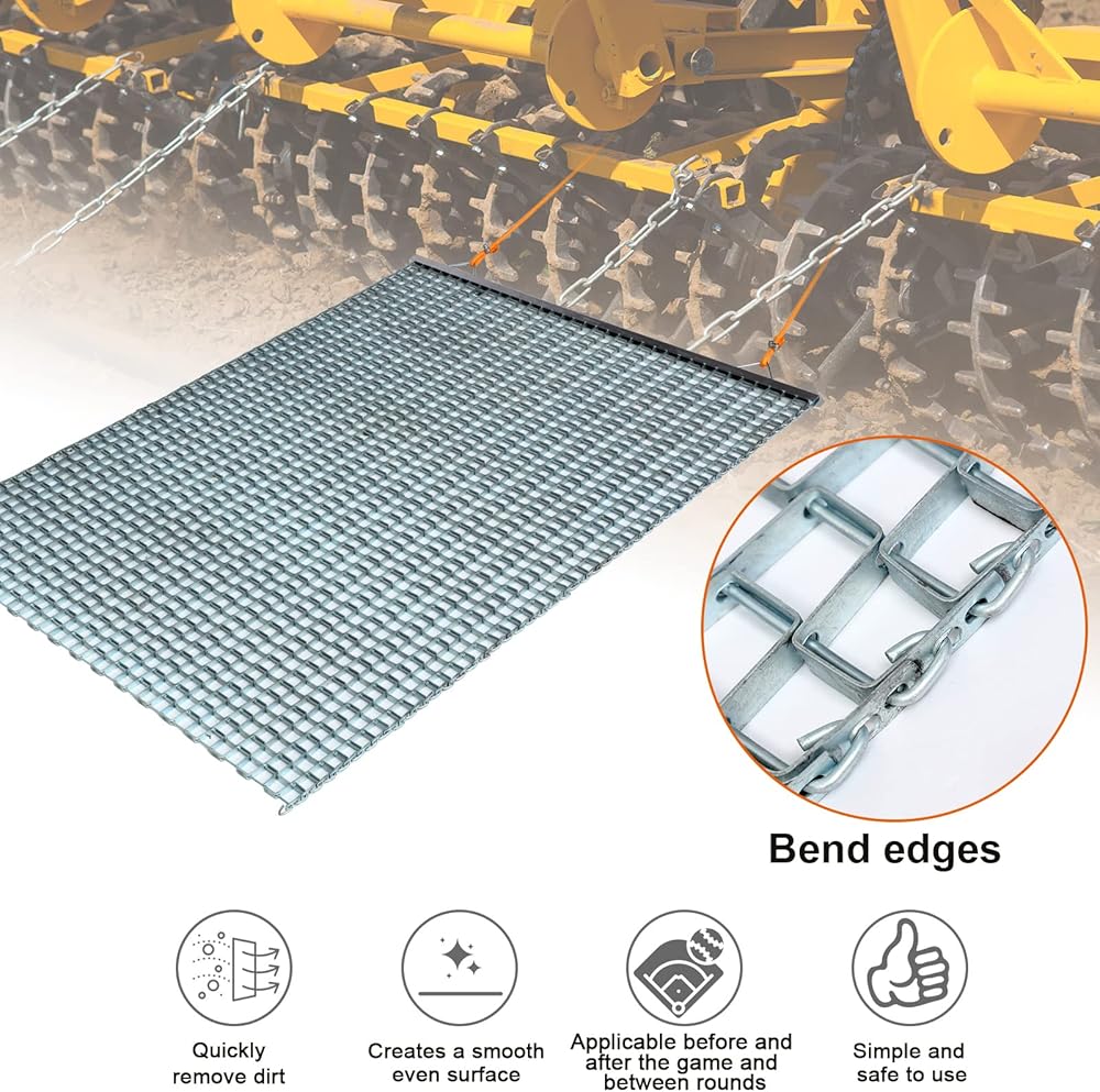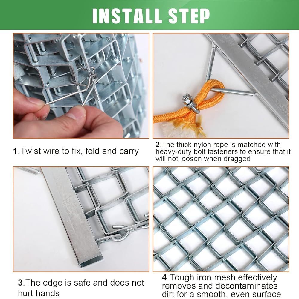 Reliable Material: heavy duty drag mat is made of galvanized steel mesh, resist rust and be long lasting, galvanized construction effectively drags and grooms the dirt to create a smooth, even surface, can bear bad weather, you can rely on to meet your needs