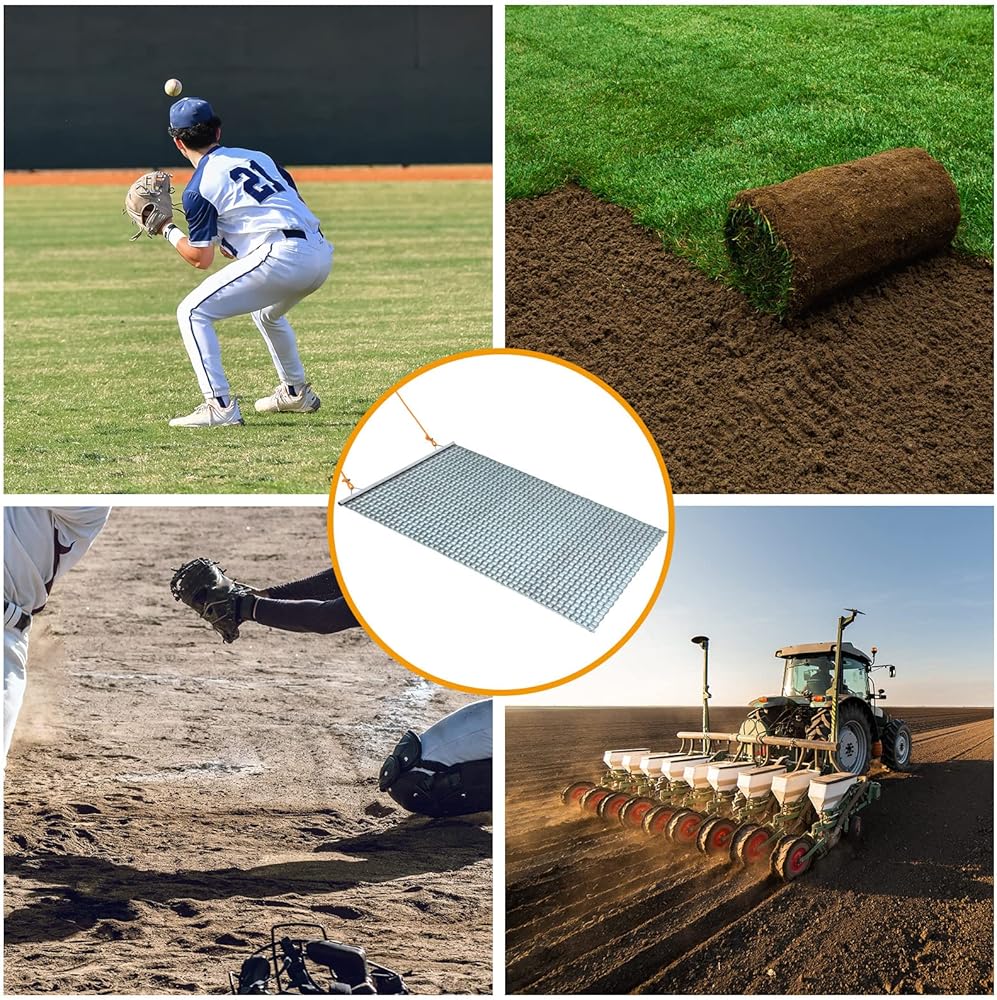Wide Application: this baseball field drag is suitable for leveling or grading fine gravel or soil, as well as many other jobs, likes levels driveways, yards, baseball diamonds, grading fine soil, food plots, parking lots, baseball outfields, golf fairways, clay tennis courts, soccer pitches and much more