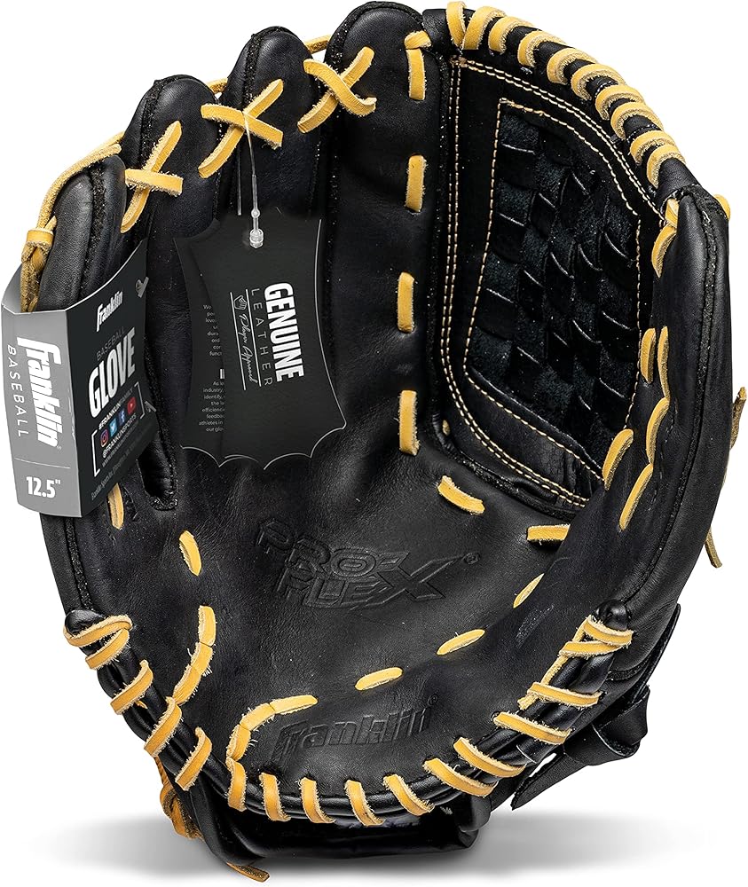 Outfielders will love playing with this Franklin Sports® adult Pro Flex® Hybrid Series 12.5" baseball glove. It combines a durable cowhide leather palm with a PU-laminated PVC hybrid back, and an adjustable wrist strap promises a customized fit. Best of all, this glove can go directly to the field since there's no break-in required.